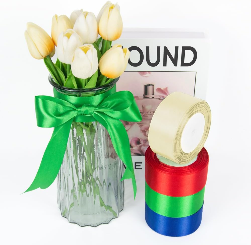 - 【High Quality】: Our fabric satin ribbon is made of 100% high-quality polyester without wrinkles or fraying ends which makes it soft and glossy. The single face satin ribbon for gift wrapping has smooth texture which is easy to cut and use.