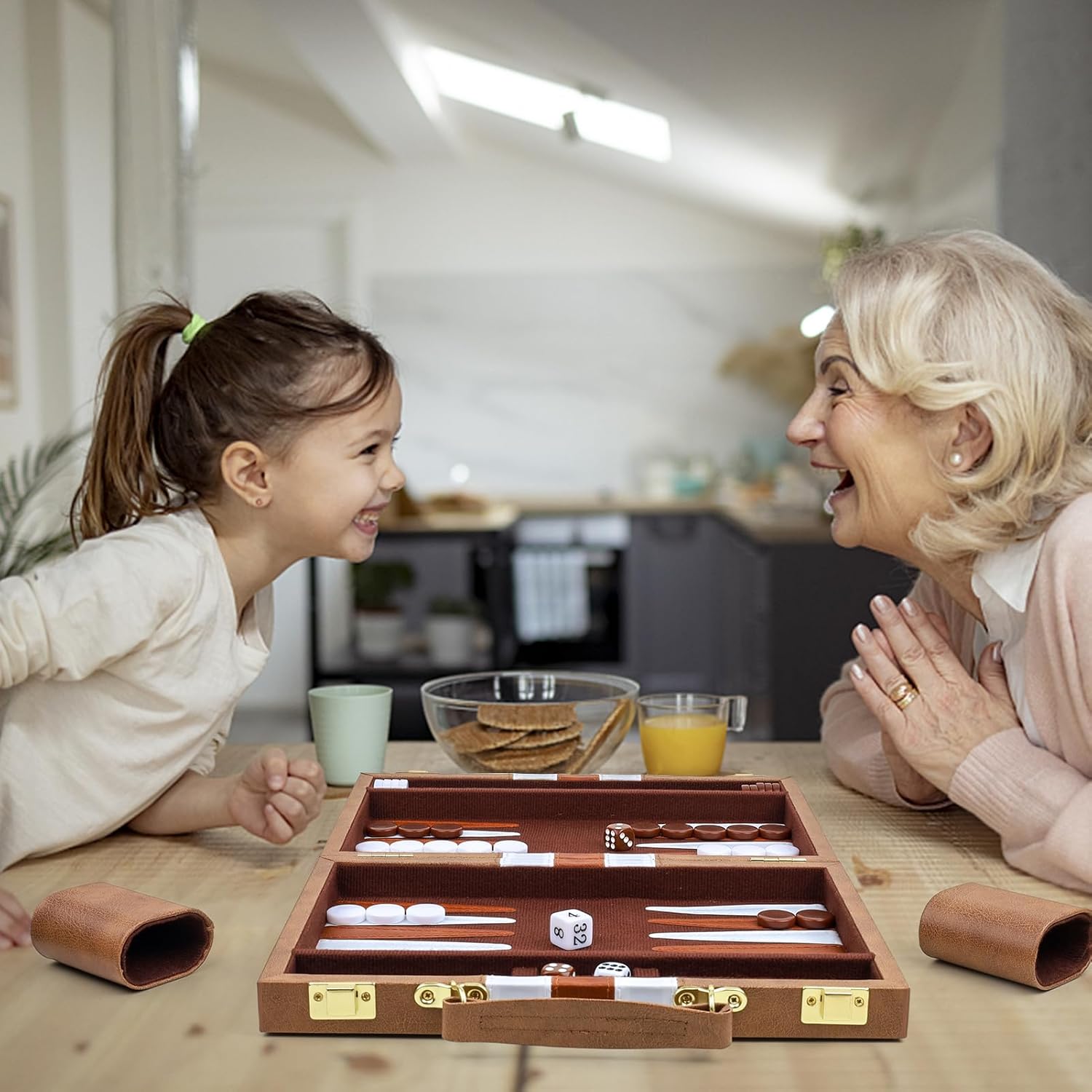 - Classic backgammon set that contains everything you need for a challenging game of backgammon, perfect for travel, indoor, outdoors, and family fun.