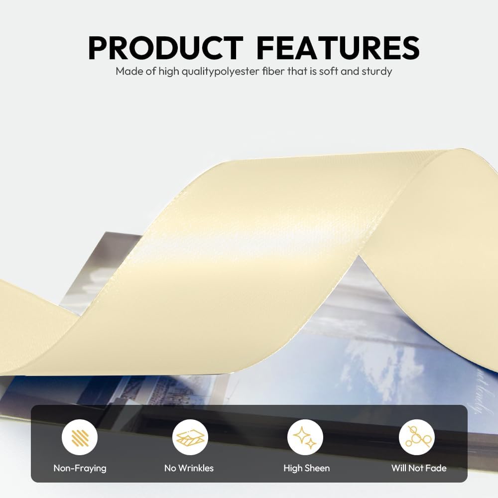 1-1/2 Inch 25 Yards Satin Ribbon Ivory, Solid Color Fabric Ribbon for Gift Wrapping, Wedding, Polyester Gift Ribbon for Birthday Party Decoration, Craft, Hair, Floral, Sewing