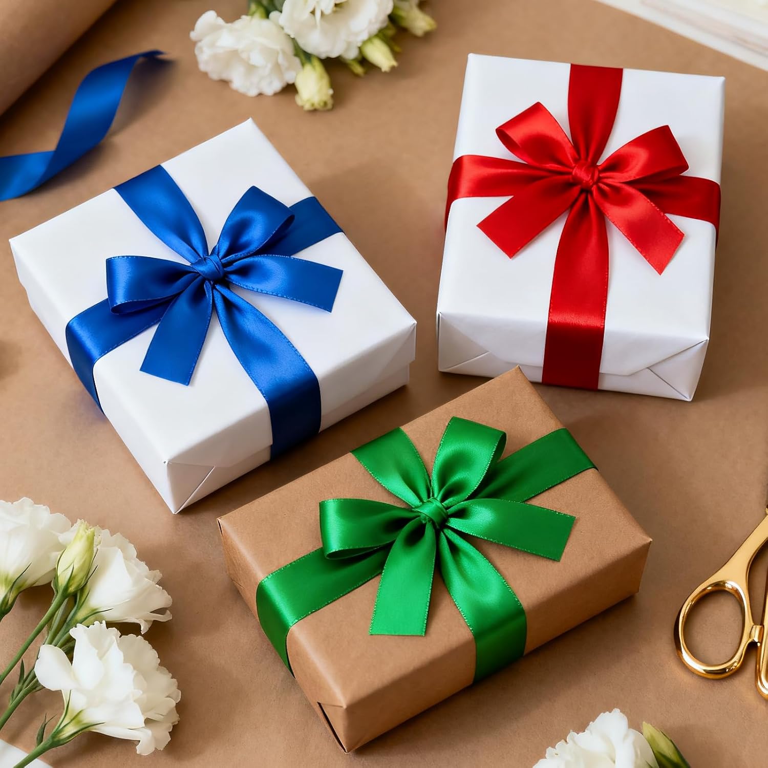 - 【Bright Color】: The satin ribbon for wrapping has multiple choices for colors. The solid color ribbon will not fade easily and is durable in different situations and occasions like birthday, wedding, party, baby shower, back to school, holiday decorations, home coming, anniversary, family gathering and more.