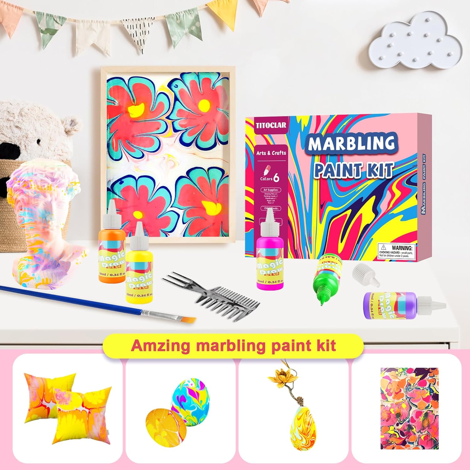 - Creative Arts & Crafts Kits : Our Crafts Kits provide everything you need to embark on your magic marbling journey. It includes 6 colors of paint (16ml each), 20 sheets of paper, 3 needles, a pipette, spreader, measuring spoon, tray, and manual. Perfect birthday gifts ideas for girls.