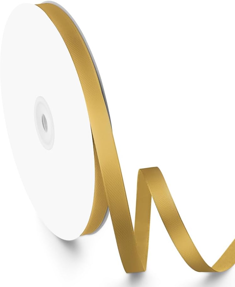 3/8" Width x 100 Yards Satin Ribbon, Small Gold Ribbon Perfect for DIY Craft, Bows, Gift Wrapping, Flower Bouquet, Valentine's Day, Christmas and Party Decoration