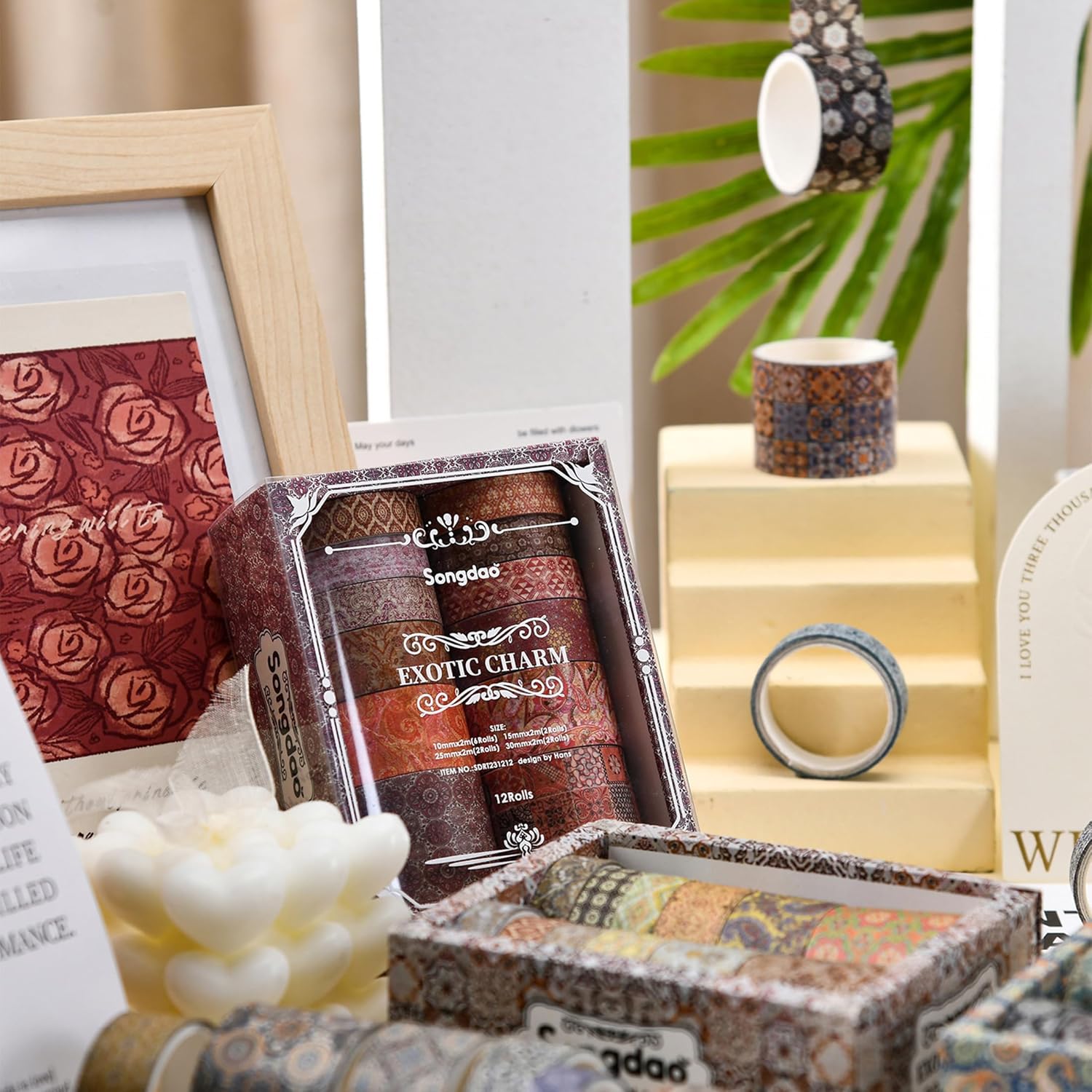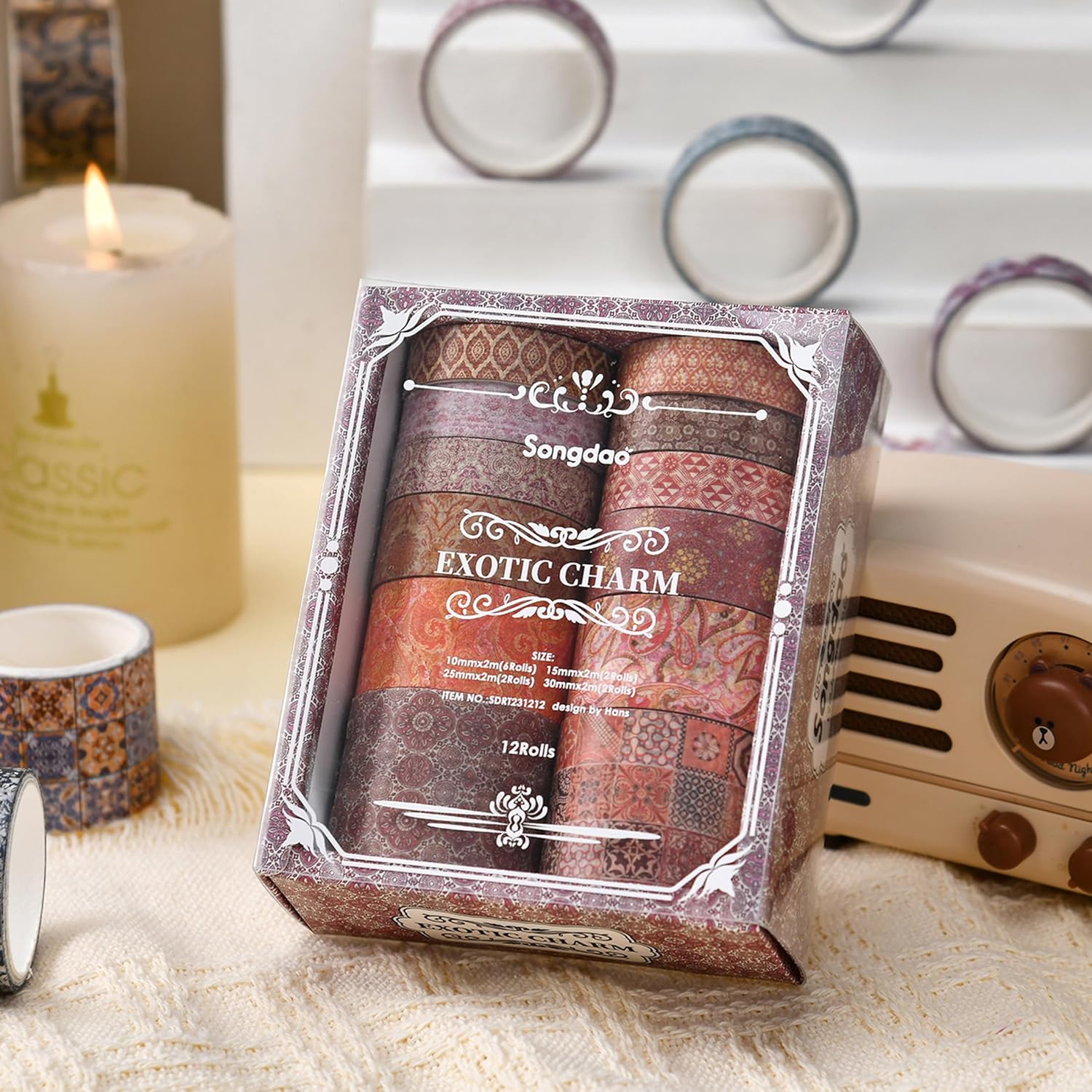 - Exotic design: This decorative tape set includes 12 different patterns, with a total of 6 combinations to choose from, showcasing international mystique