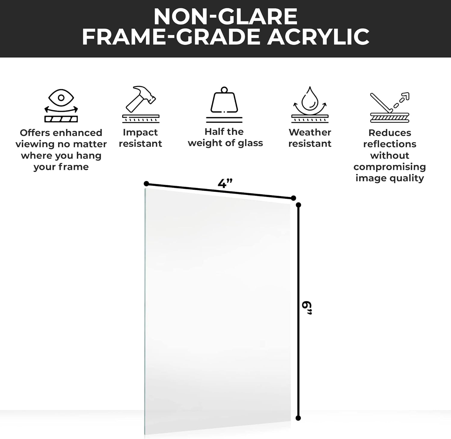 - FRAME-GRADE QUALITY: This 4x6 non-glare acrylic glazing is crystal clear & provides protection from dust and light while reducing reflections.