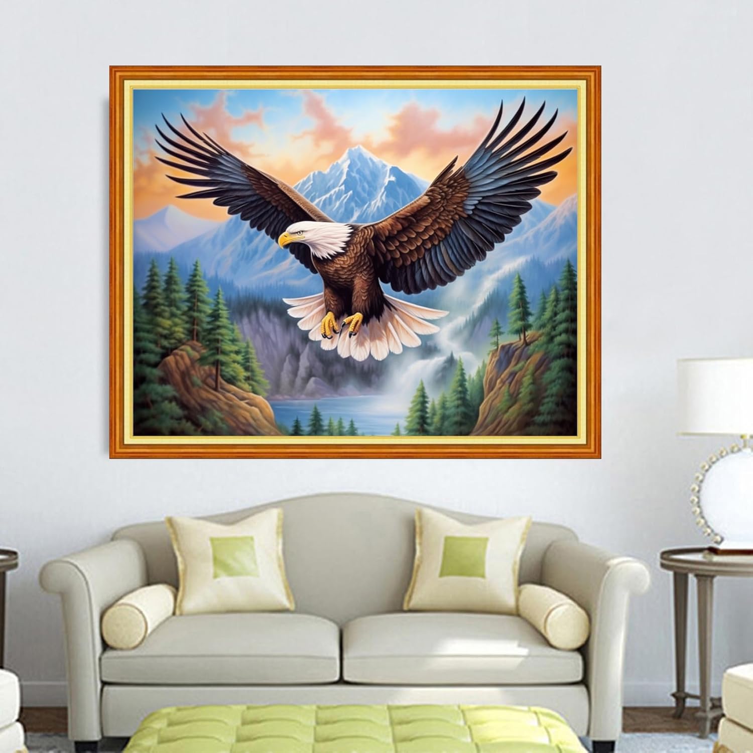 DMCVIVR Stamped Cross Stitch Kits for Adults Beginners Embroidery Kits 11CT Needlepoint Kits Cross Stitch Patterns Embroidery Patterns-Eagle Mountain and River 16x20 inch