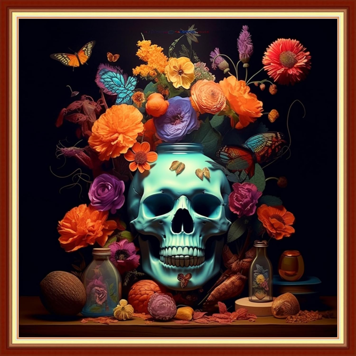 DMCVIVR Stamped Cross Stitch Kits for Adults Beginners Embroidery Kits 11CT Needlepoint Kits Cross Stitch Patterns Embroidery Patterns-Skeleton Flower 18x18 inch