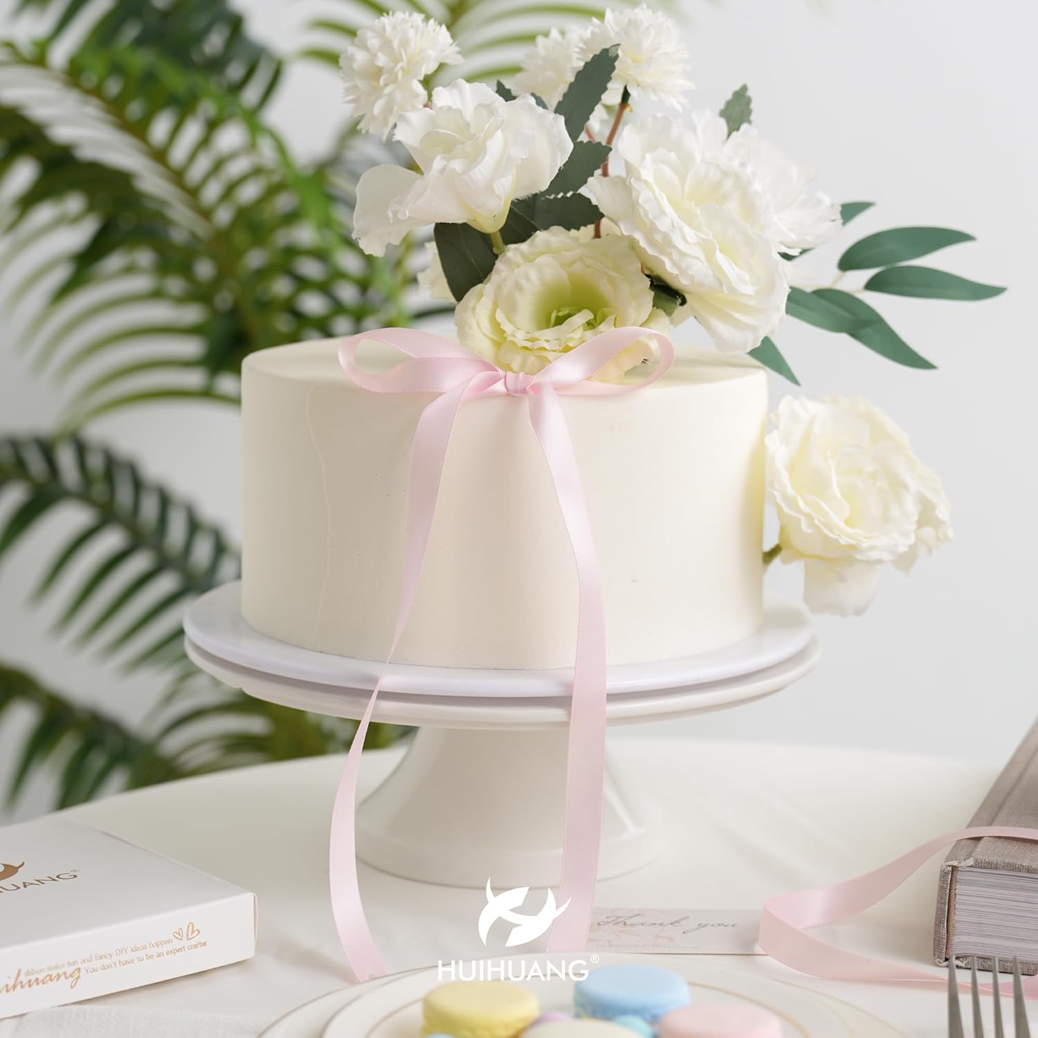 HUIHUANG Pink Satin Ribbon 1/2 inch X 50 Yards Continuous, Baby Pink Double-Faced Satin Ribbon for Gift Wrapping, Bows, DIY Crafts, Flower Bouquet, Bridal Shower Wedding Decor
