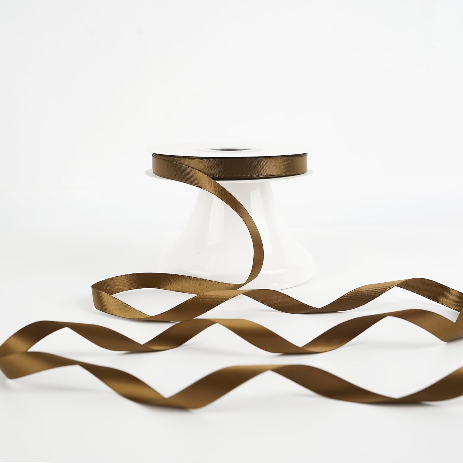 - Size: Brown satin ribbon measures 1/2" wide and continuous 50 yards(150 feet) long in a complete roll in a paper box. Perfect size for various decorations and crafts