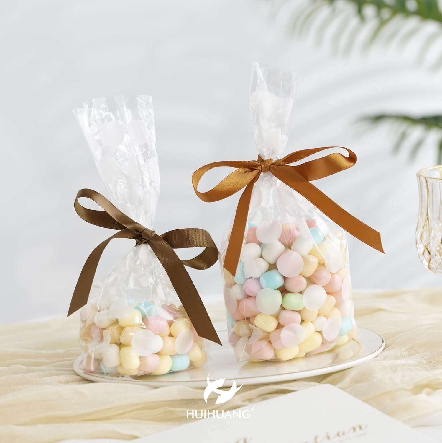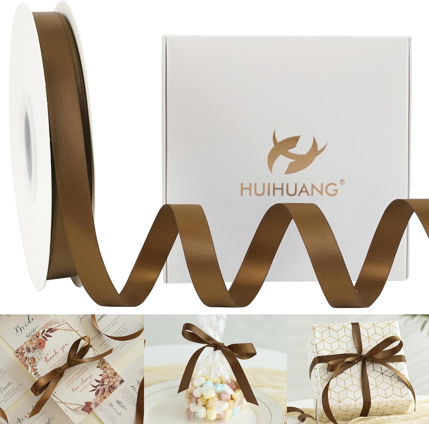 HUIHUANG Brown Satin Ribbon 1/2 inch Continuous 50 Yards Double-Faced Satin Ribbon for Gift Wrapping, Bows, DIY Crafts, Flower Bouquet, Wedding Decor, Holiday Decor