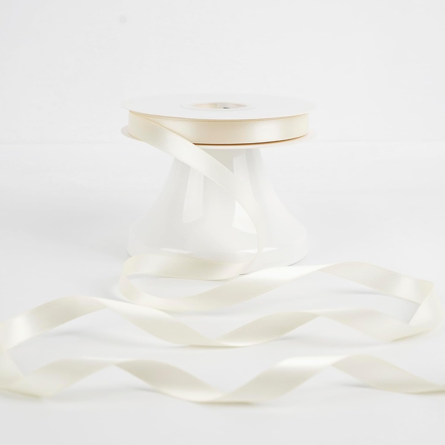 - Size: Ivory satin ribbon measures 1/2" wide and continuous 50 yards(150 feet) long in a complete roll in a paper box. Perfect size for various decorations and crafts