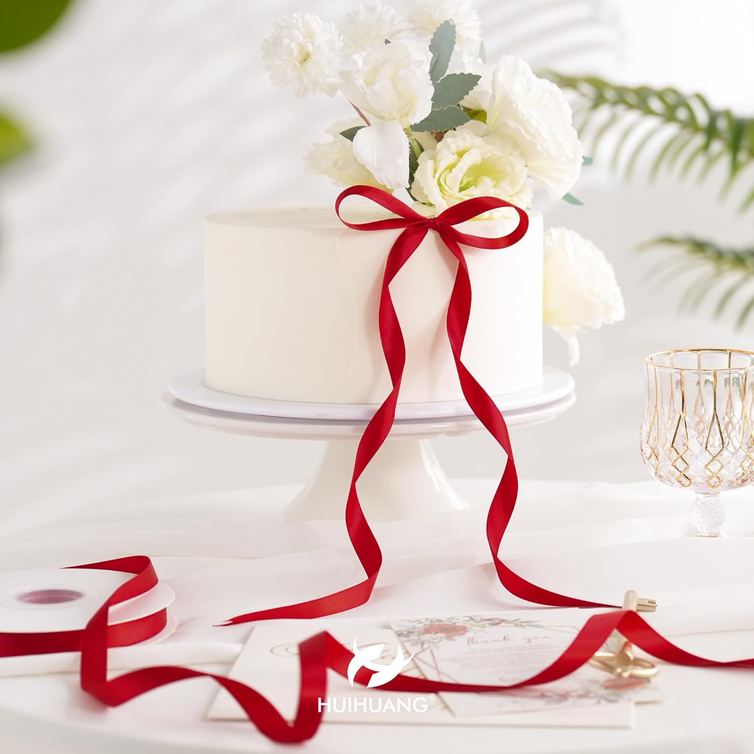 HUIHUANG Red Satin Ribbon 1/2 inch X 50 Yards Continuous, Red Double-Faced Satin Ribbon for Gift Wrapping, Bows, DIY Crafts, Flower Bouquet, Wedding, Christmas Decor, Birthday