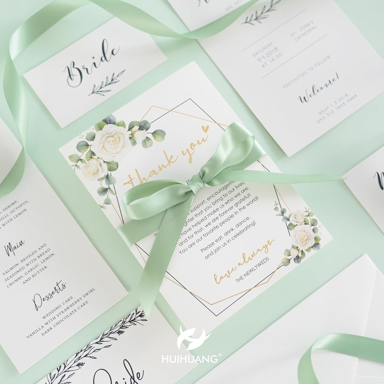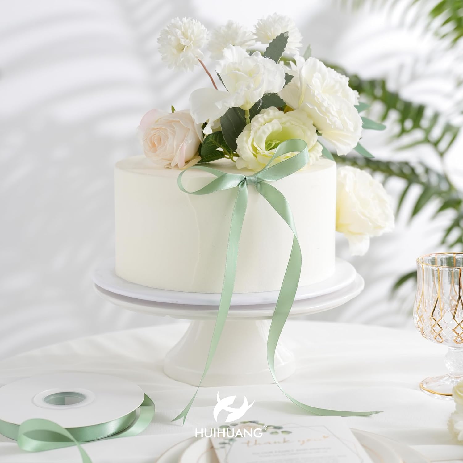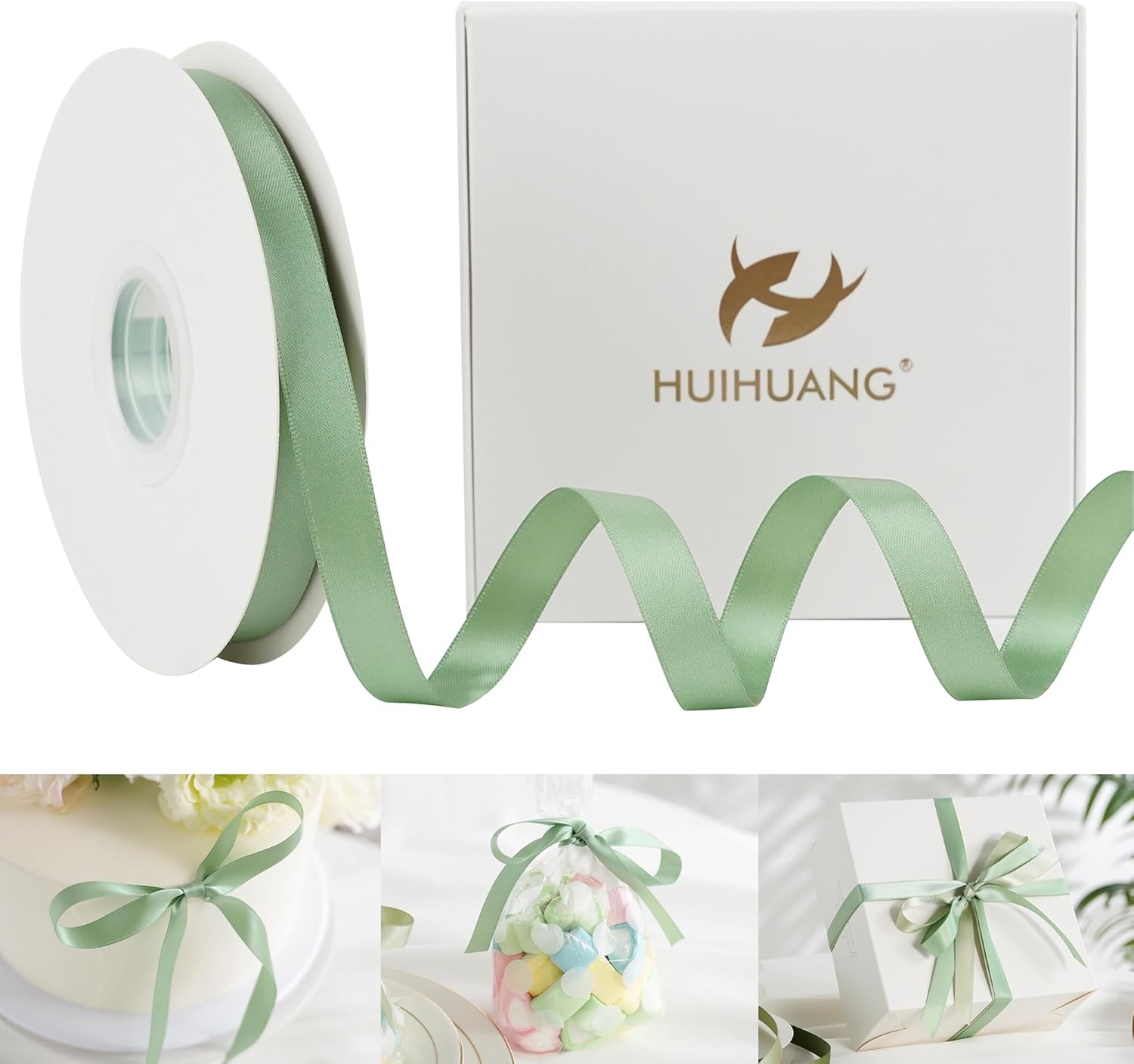HUIHUANG Sage Green Satin Ribbon 1/2 inch X 50 Yards Continuous, Light Green Double-Faced Satin Ribbon for Gift Wrapping, Bows, DIY Crafts, Flower Bouquet, Bridal Shower Wedding Decor