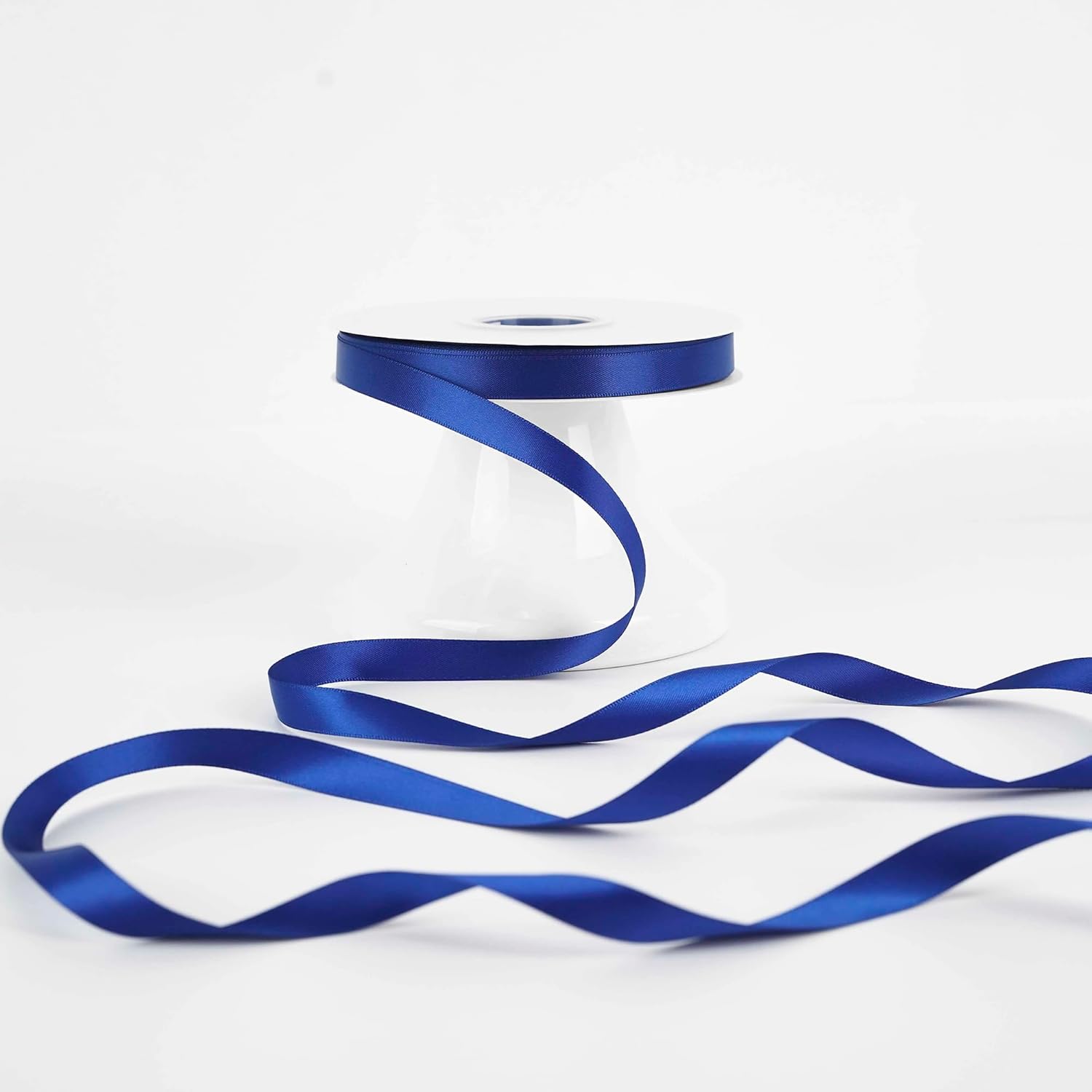 - Size: Royal blue satin ribbon measures 1/2" wide and continuous 50 yards(150 feet) long in a complete roll in a paper box. Perfect size for various decorations and crafts
