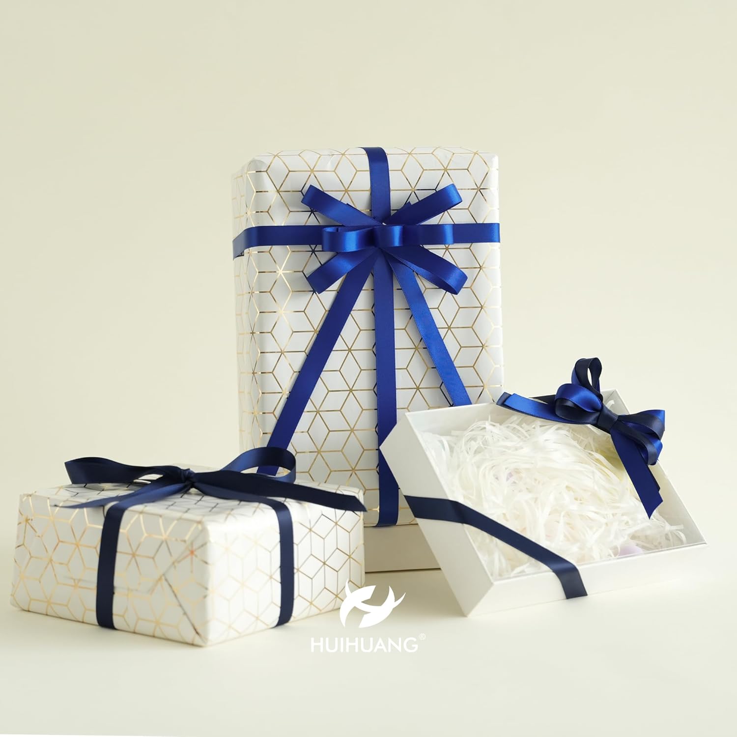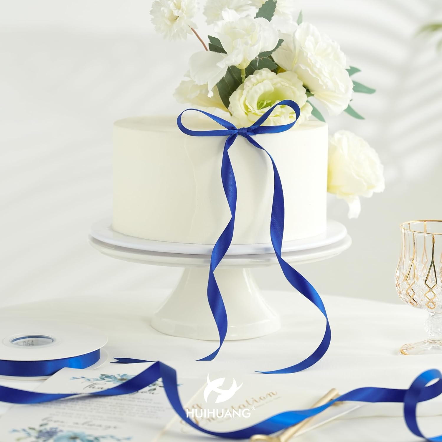 HUIHUANG Royal Blue Ribbon 1/2 inch X 50 Yards Continuous, Double-Faced Satin Ribbon for Gift Wrapping, Bows, DIY Crafts, Flower Bouquet, Independence Day Decoration