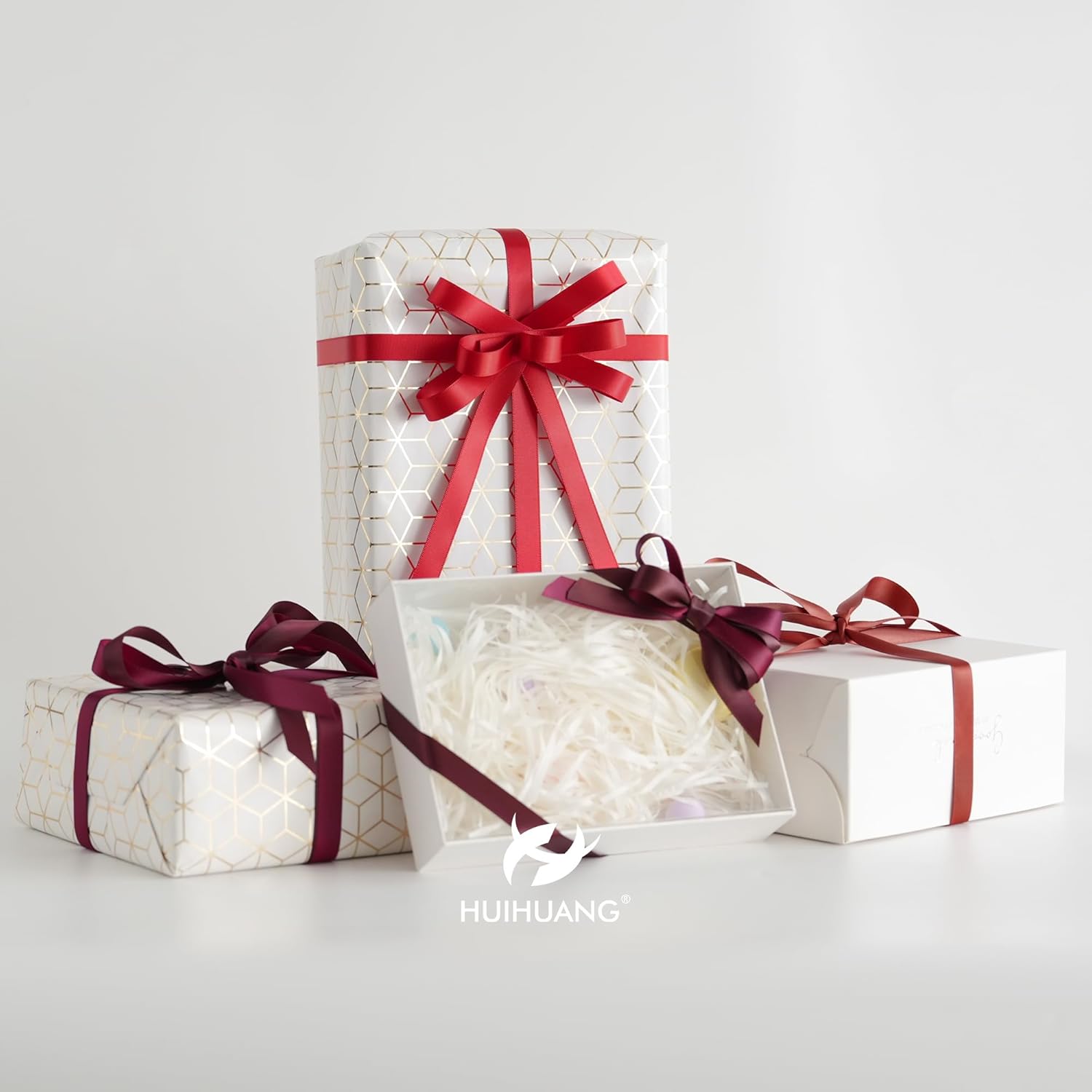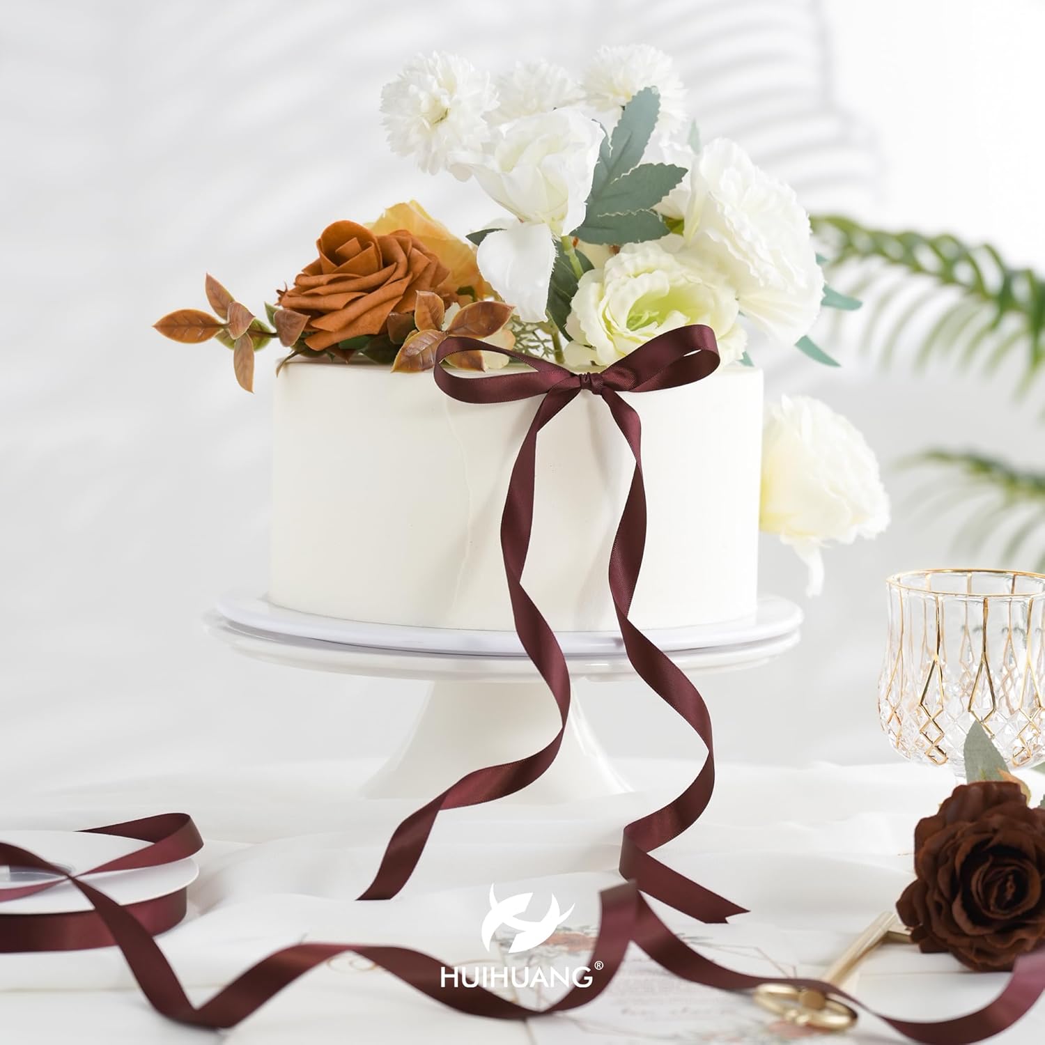 HUIHUANG Burgundy Satin Ribbon 1/2 inch X 50 Yards Continuous, Maroon Double-Faced Satin Ribbon for Gift Wrapping, Bows, DIY Crafts, Flower Bouquet, Wedding, Christmas Decor, Birthday