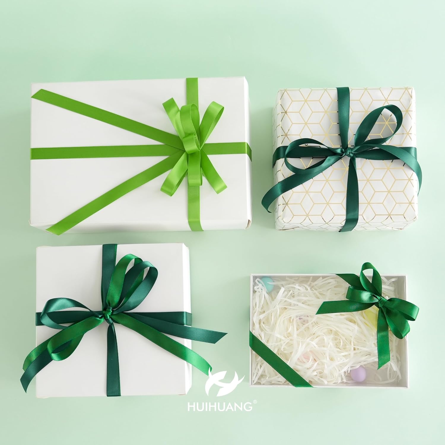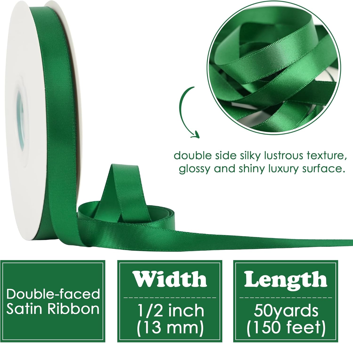 HUIHUANG Forest Green Satin Ribbon 1/2 inch X 50 Yards Continuous, Green Double-Faced Satin Ribbon for Gift Wrapping, Bows, DIY Crafts, Flower Bouquet, Holiday Home Decor
