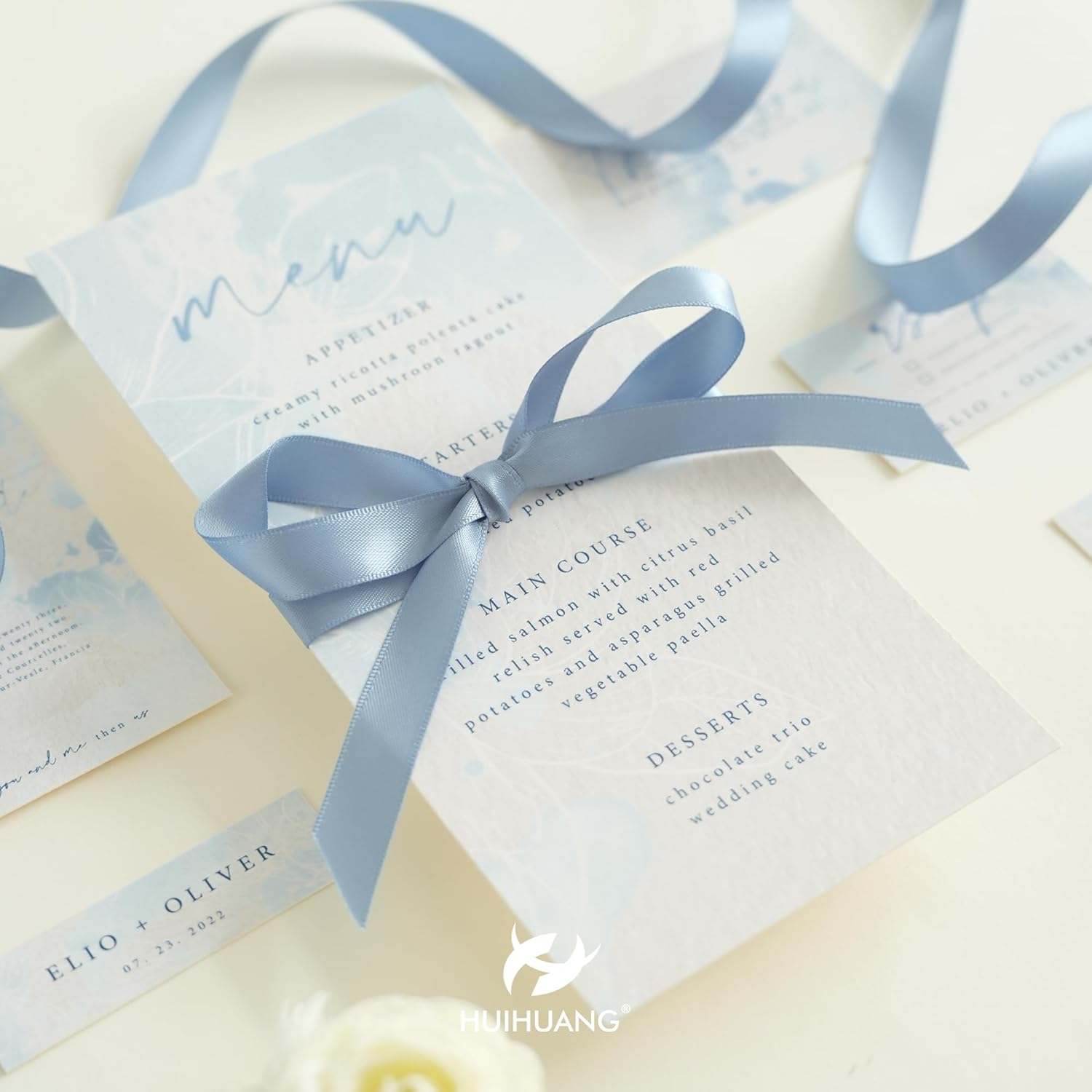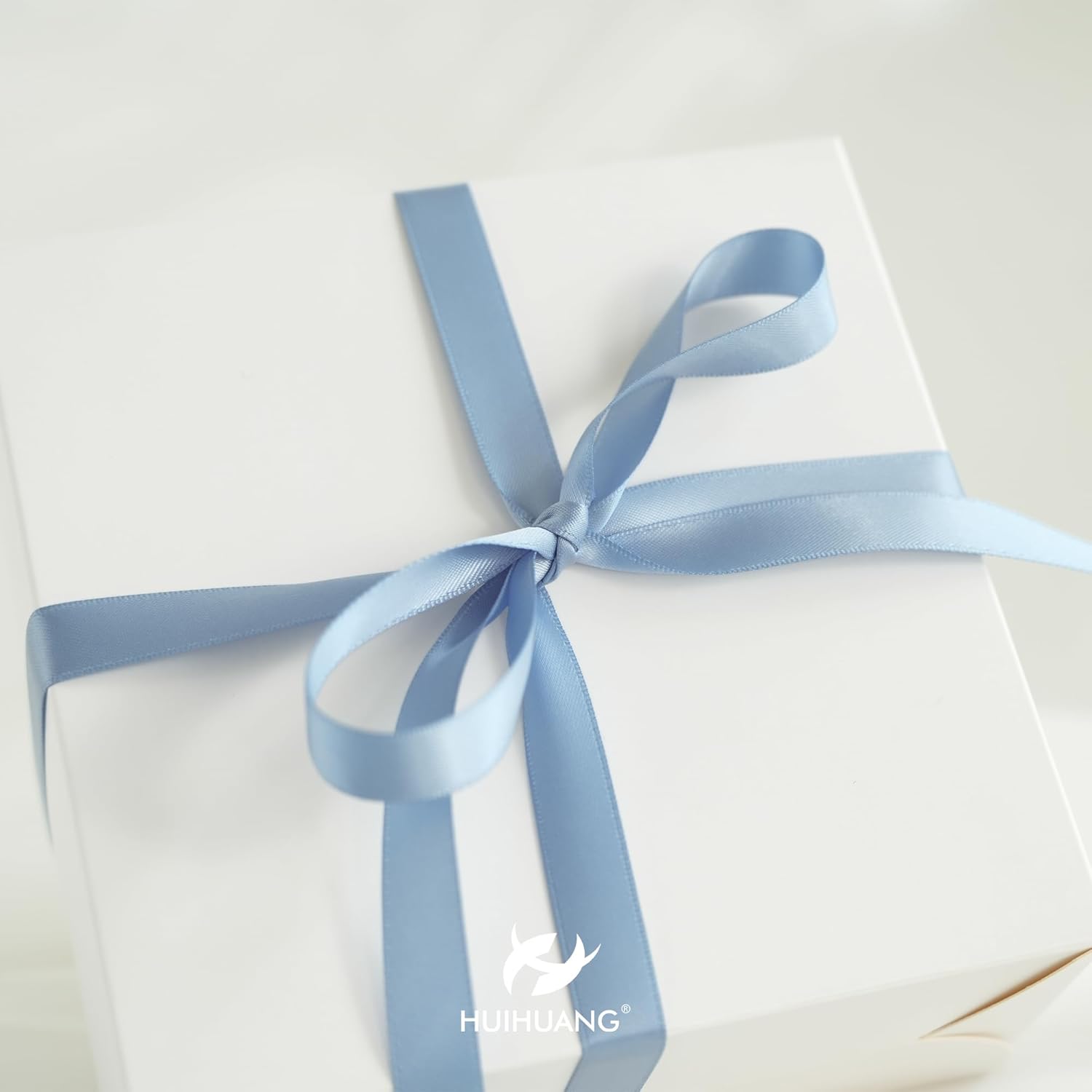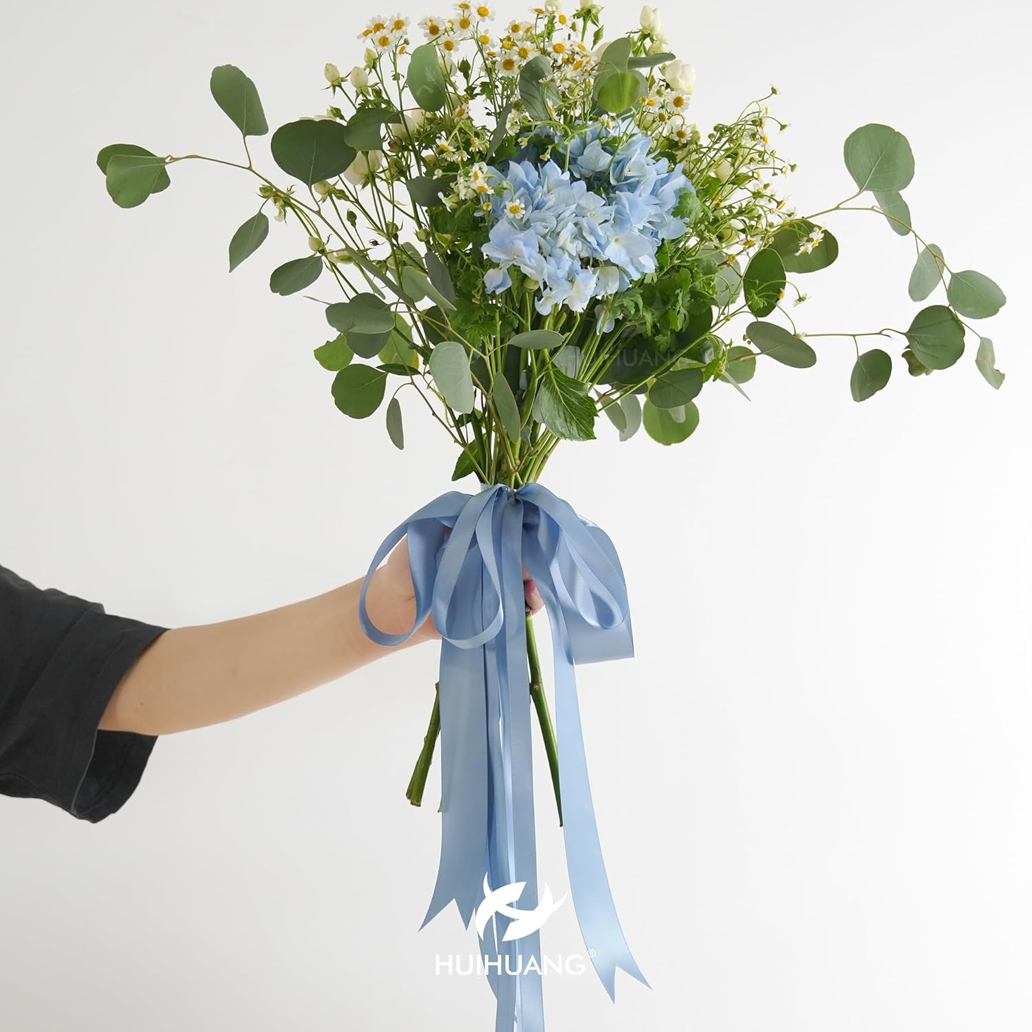 HUIHUANG French Blue Satin Ribbon 1/2 inch X 50 Yards Continuous, Dusty Blue Double-Faced Satin Ribbon for Gift Wrapping, Bows, DIY Crafts, Flower Bouquet, Bridal Wedding Decor, Flower Crowns