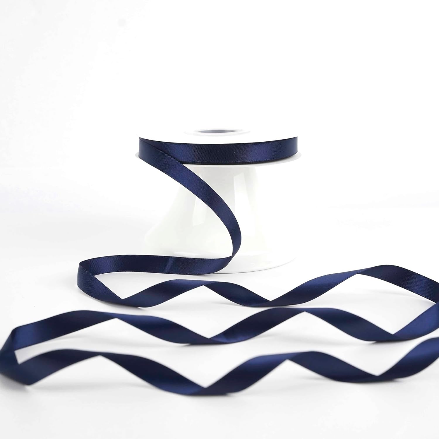 - Size: Navy blue satin ribbon measures 1/2" wide and continuous 50 yards(150 feet) long in a complete roll in a paper box. Perfect size for various decorations and crafts