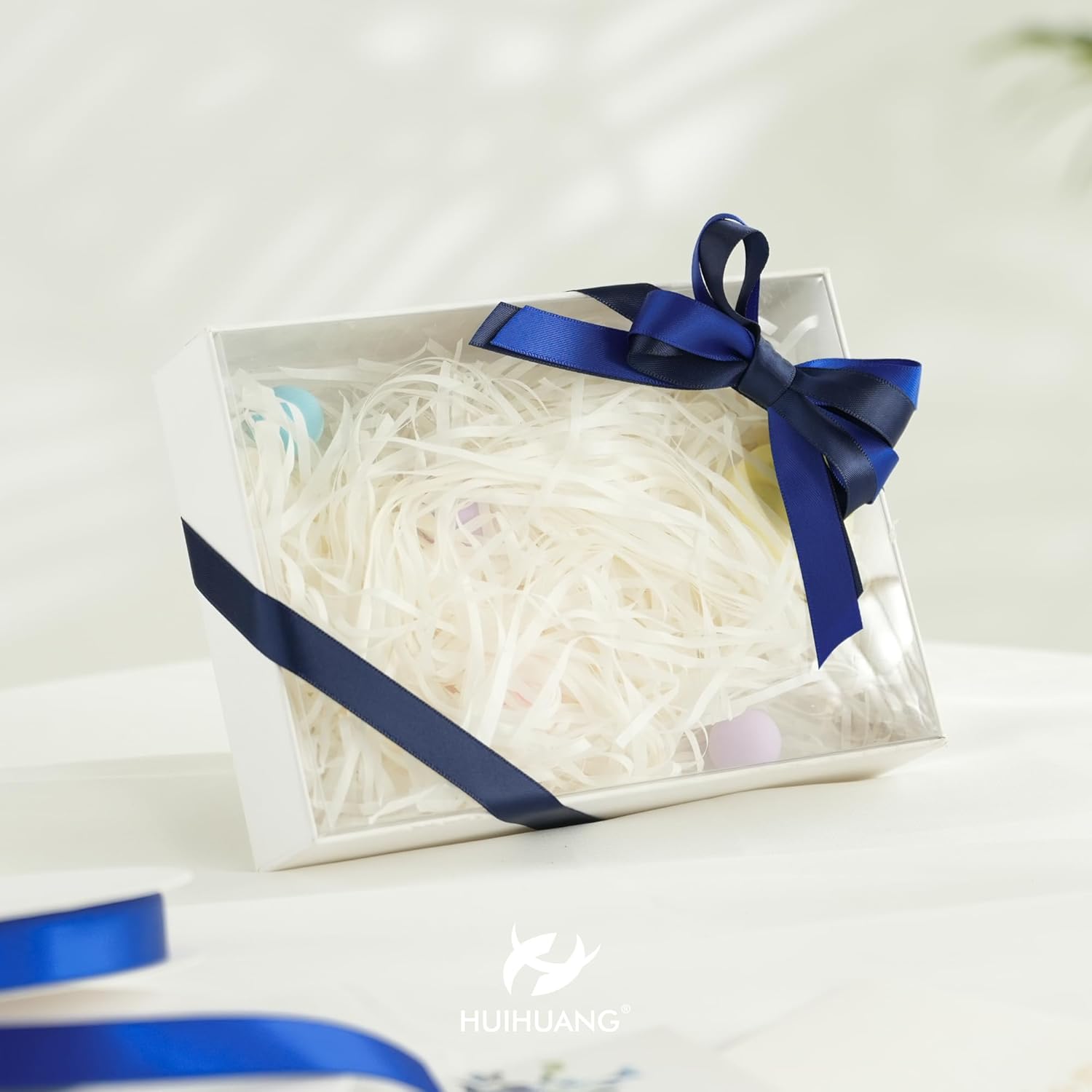 HUIHUANG Navy Satin Ribbon 1/2 inch X 50 Yards Continuous, Navy Blue Double-Faced Satin Ribbon for Gift Wrapping, Bows, DIY Crafts, Flower Bouquet, Wedding Decor, Holiday Party Decor
