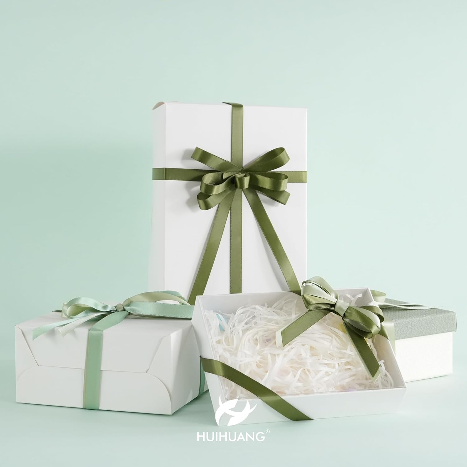 HUIHUANG Moss Green Satin Ribbon 1/2 inch X 50 Yards Continuous, Green Double-Faced Satin Ribbon for Gift Wrapping, Bows, DIY Crafts, Flower Bouquet, Wedding Bridal Shower Decor