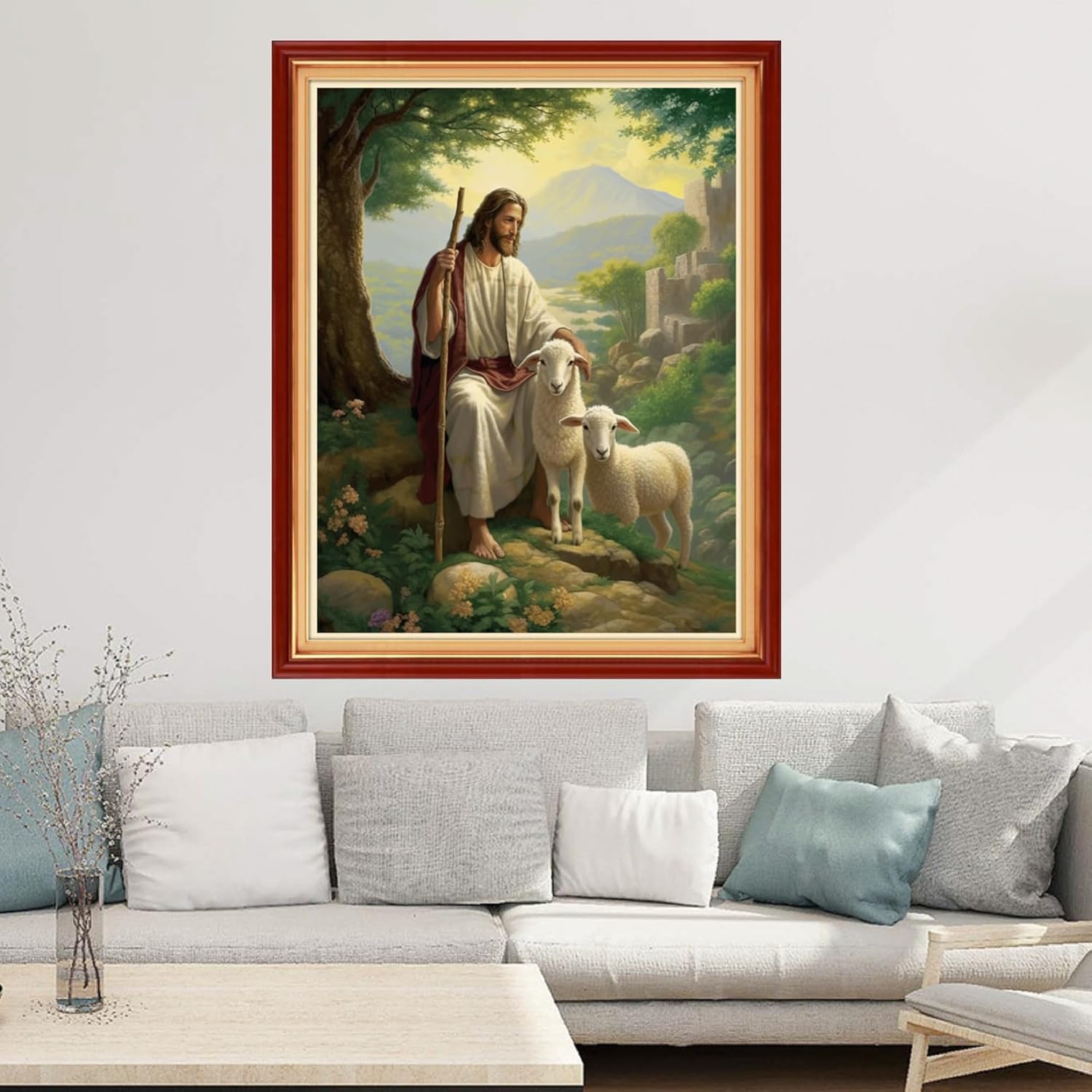 Joyhoor Cross Stitch Kits for Beginners Stamped Cross-Stitch Supplies Needlework preprint Embroidery Kits for Adults DIY Needlepoint Kits Embroidery Patterns 11CT-Jesus Shepherds the Sheep 16x20 inchs
