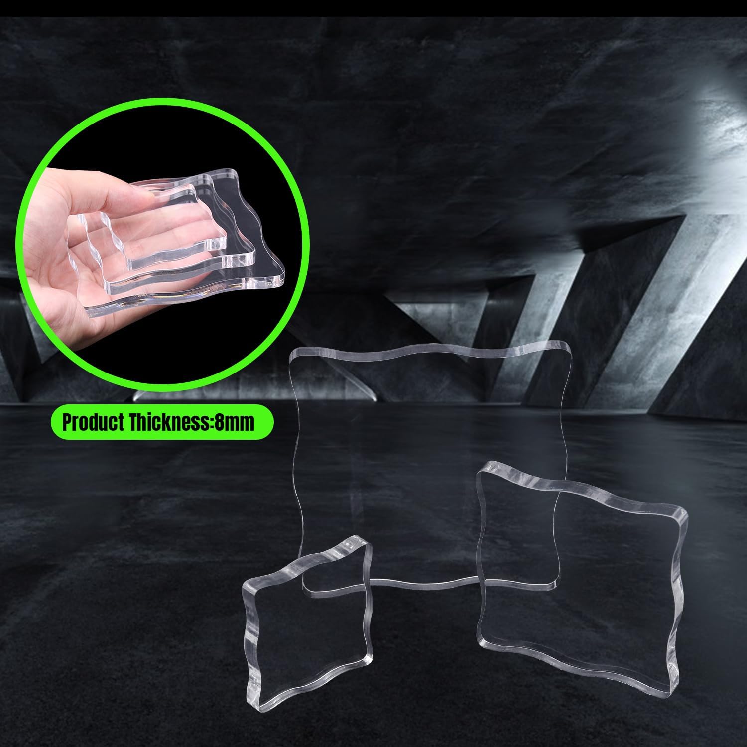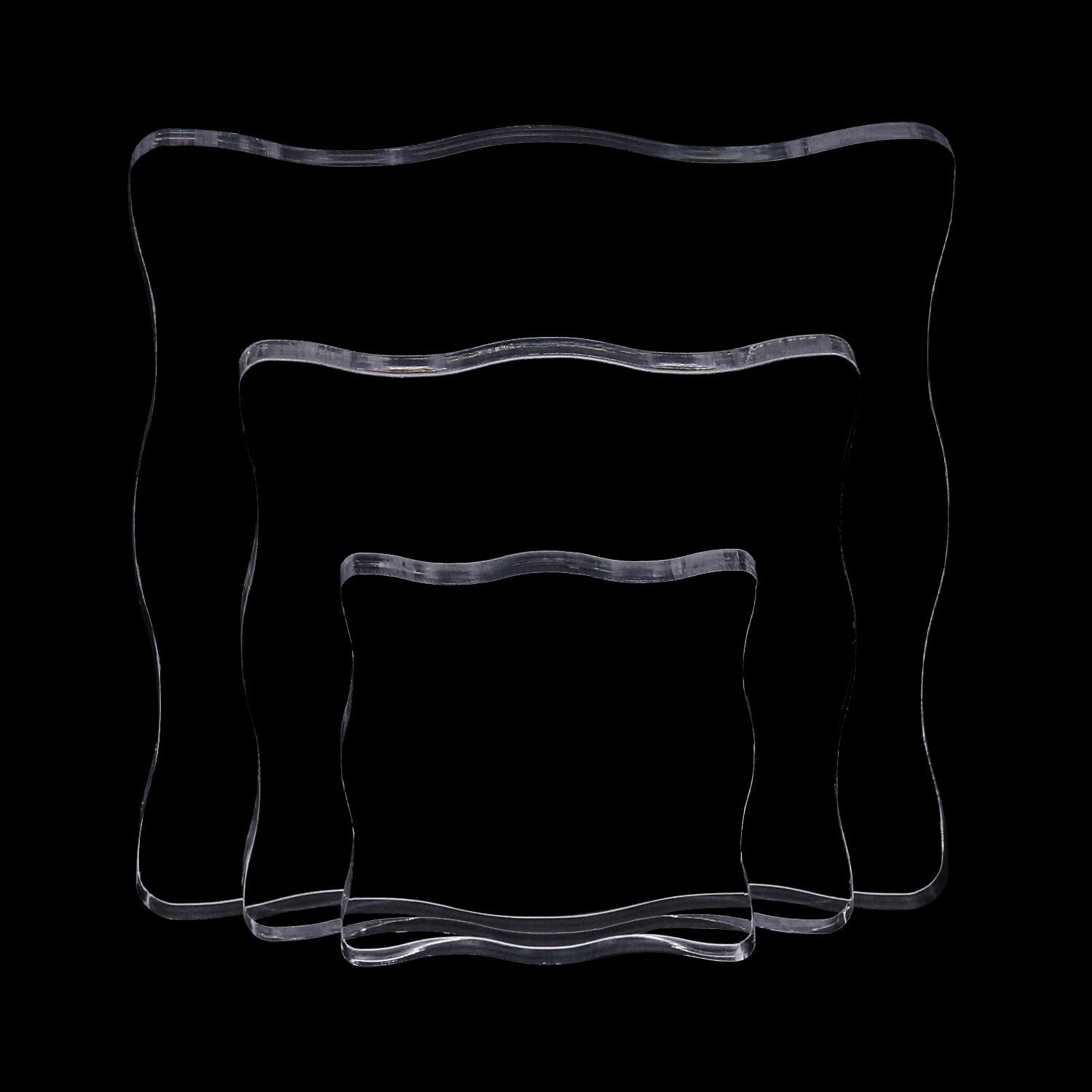 3-Piece Clear Acrylic Stamp Blocks - Wavy Blocks with Grid Lines for Scrapbooking Crafts