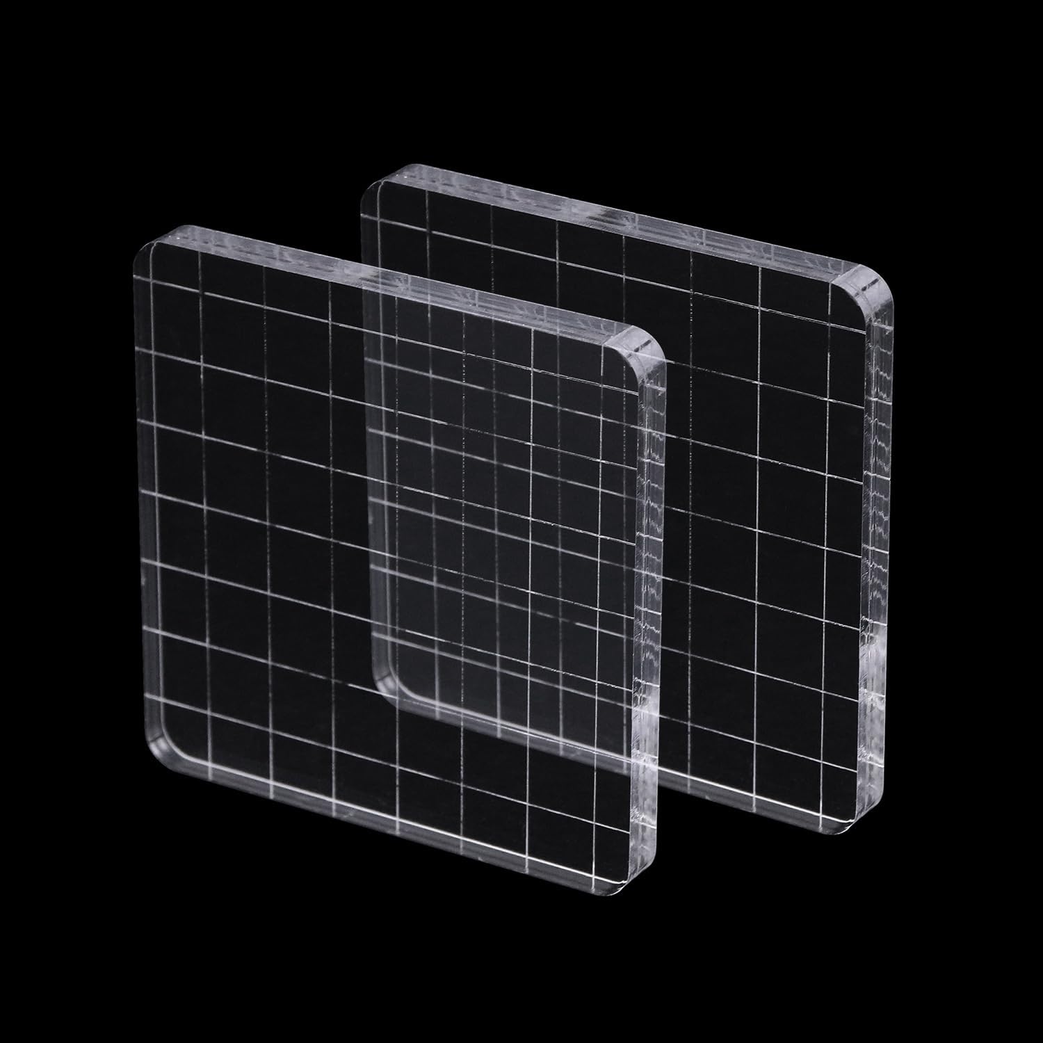 2Pcs Clear Stamp Blocks Set, 3 x 3 Inch Square Acrylic Blocks for Stamping With Grid Lines - Scrapbooking Crafts Tools
