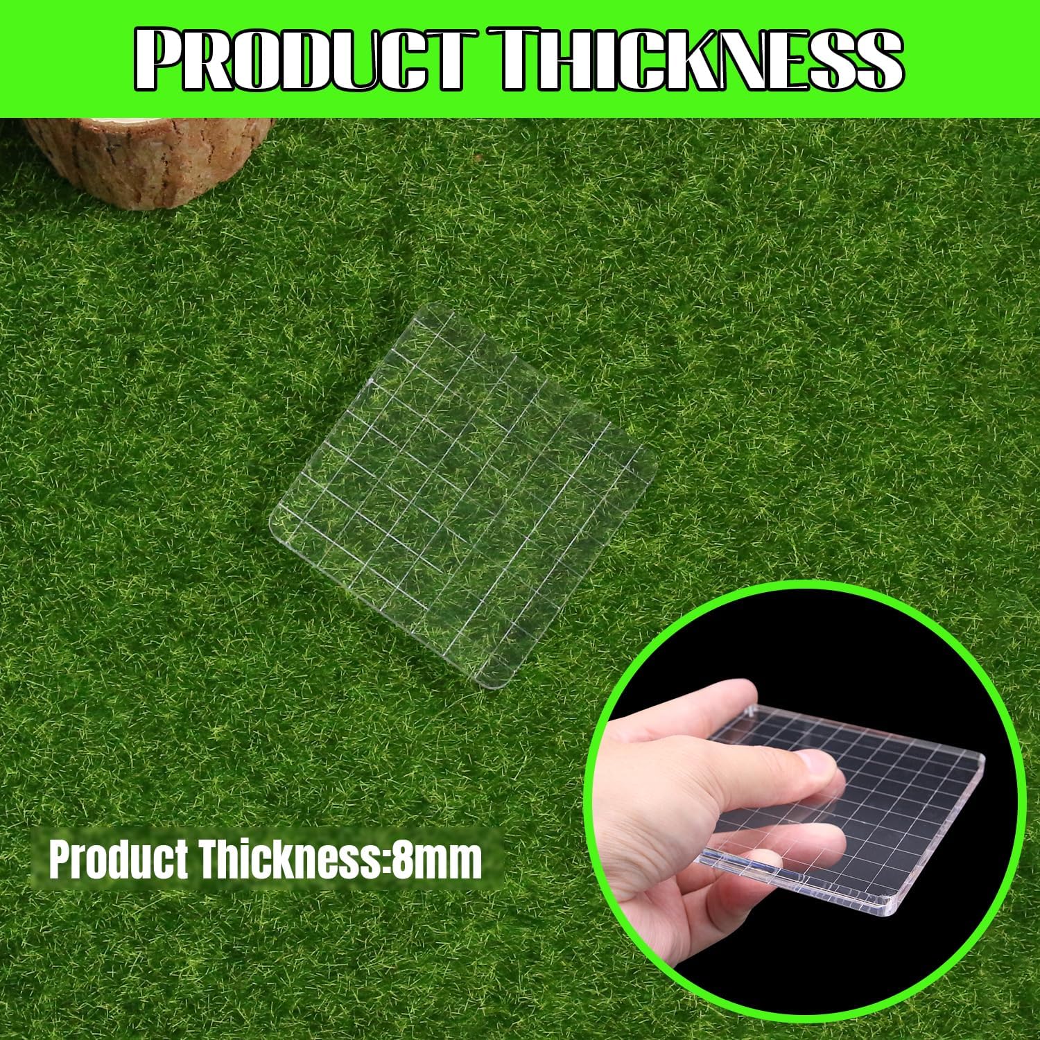 - Package Contents:The thickness is 0.31 inches, 3 x 3 inches acrylic stamp blocks. NOTE: This is a protective cover to protect the stamp block from scratches, please peel off the cover before use.