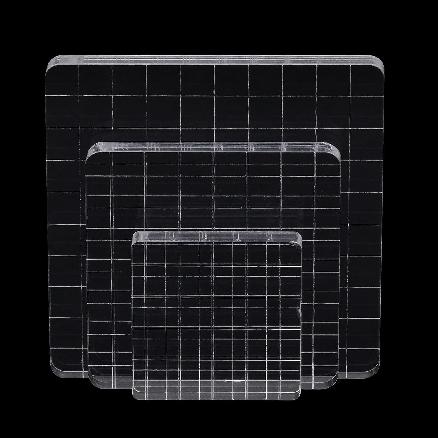 3Pcs Clear Stamp Blocks Set, Square Acrylic Blocks for Stamping With Grid Lines, Tools for Scrapbooking Crafts