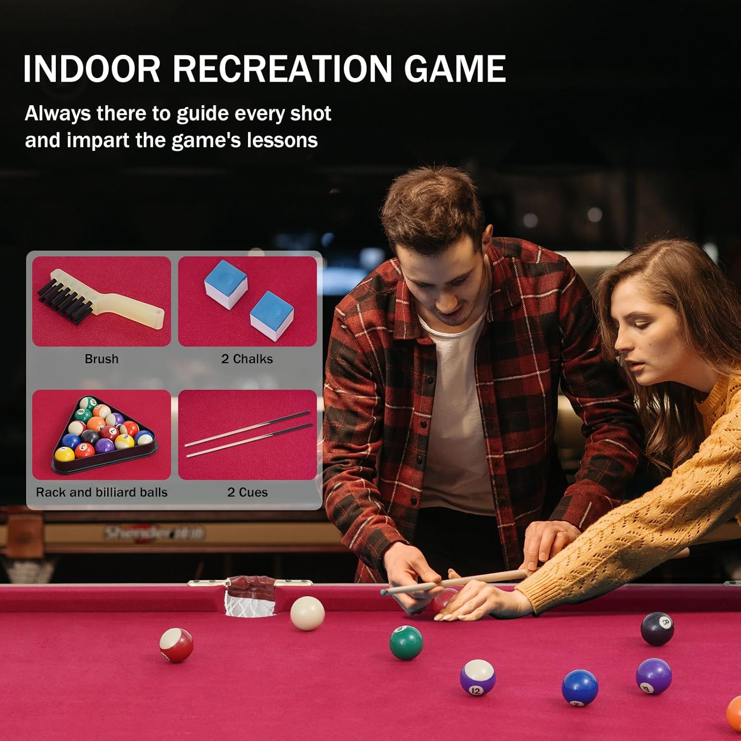 - 【COMPLETE ACCESSORIES & EXCELLENT SERVICE】Our portable foldable pool table is ideal. The inclusion of pool table accessories include 16 balls, 2 cues, 2 chalk, 1 brush and 1 triangle.We aim to provide customers with the best quality service, any problem you can contact us, and we will give you the best solution!
