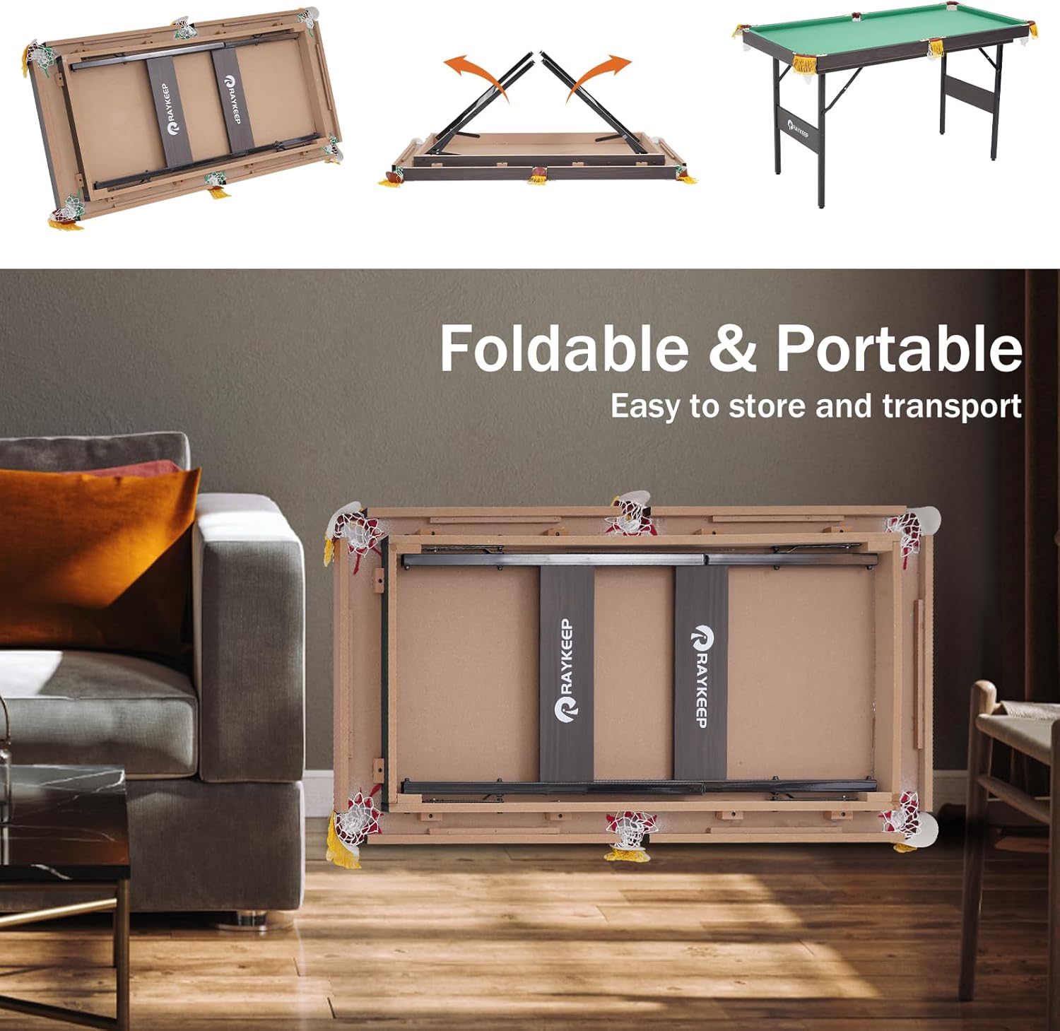 - 【COMPLETE ACCESSORIES & EXCELLENT SERVICE】Our portable foldable pool table is ideal. The inclusion of pool table accessories include 16 balls, 2 cues, 2 chalk, 1 brush and 1 triangle.We aim to provide customers with the best quality service, any problem you can contact us, and we will give you the best solution!