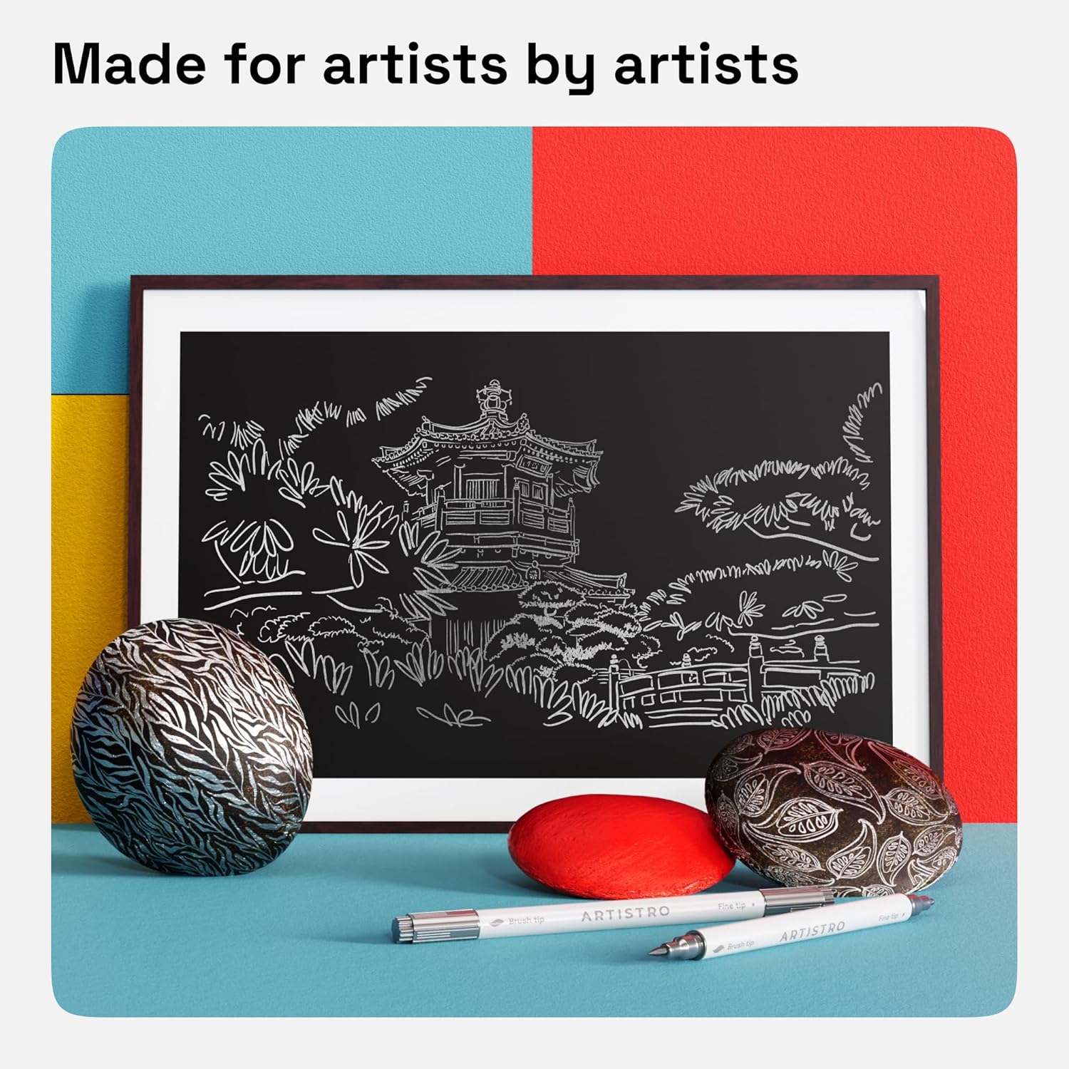 ARTISTRO 2 Silver Dual-Tip Acrylic Paint Pens - Multisurface Metallic Markers for Glass, Rock, Fabric, Wood, Plastic & More - 1 mm Fine & Brush Tips