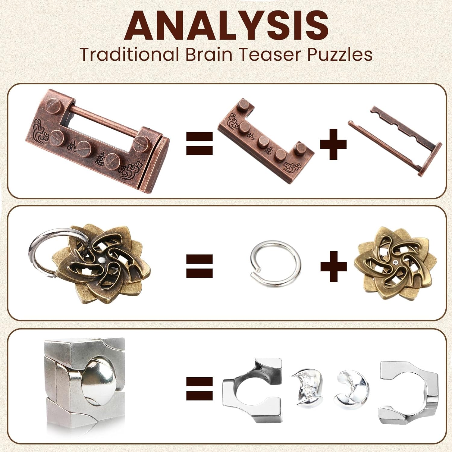 - Reliable and Safe to Play: these metal puzzles are made of safe and reliable stainless steel, with smooth hand tactility, and have no pointed edges, which will provide you fun without getting hurt; Sturdy and durable, not easy to break or deform even when thrown or stepped on