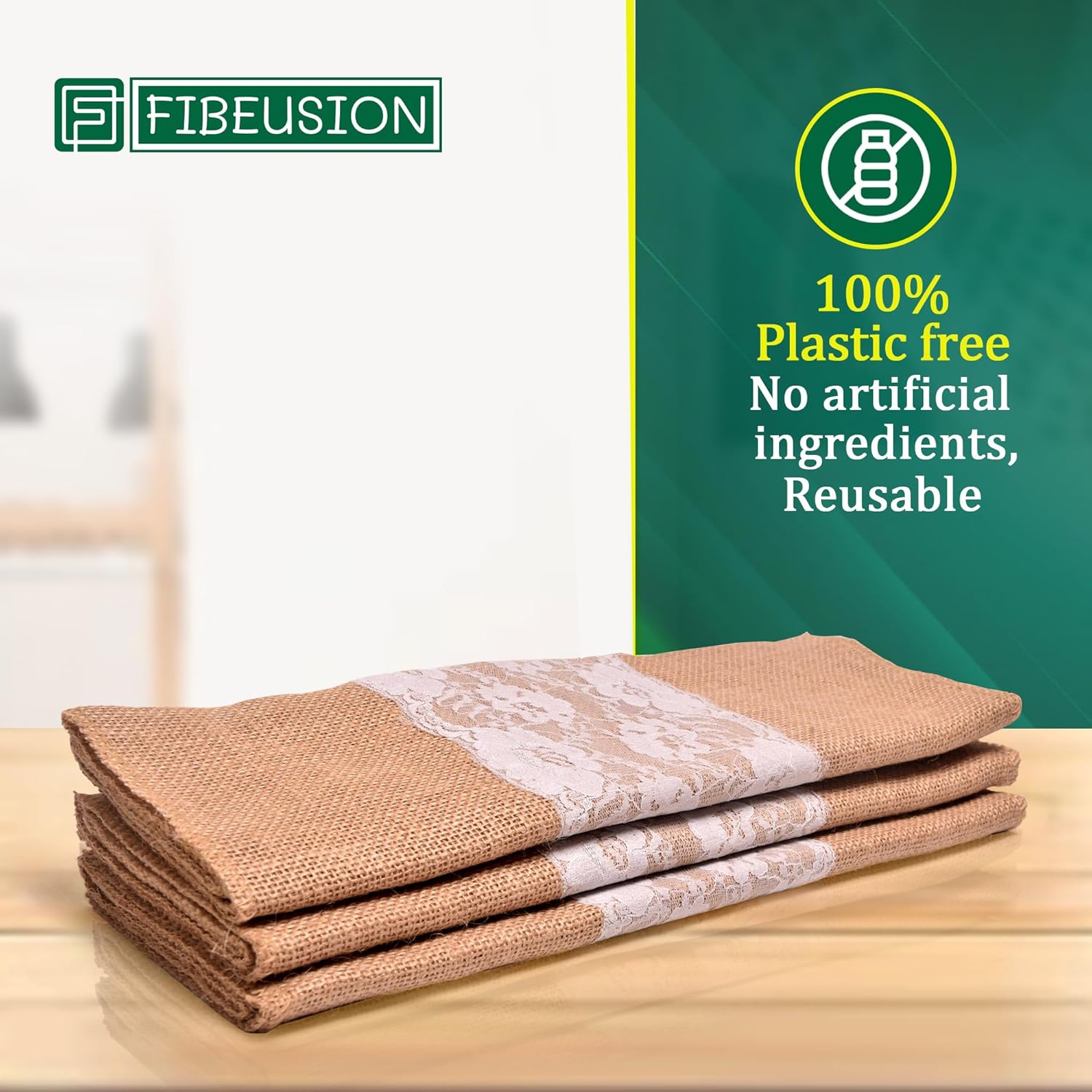 - NO FRAY - Special Finish: FIBEUSION burlap table runners with lace feature finished edges on all four sides, adding a clean, classic and rustic touch to the interior. Seamless, one-piece design (no joints) of burlap runners has regular rows of neat and symmetrical stitching.