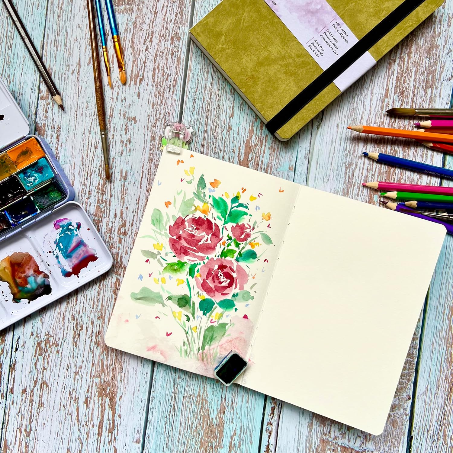 - Cold Press Watercolor Paper: it has a slightly rough texture that holds pigment well and creates unique texture in paintings. It’s versatile and popular among watercolor artists for creating beautiful, expressive paintings.