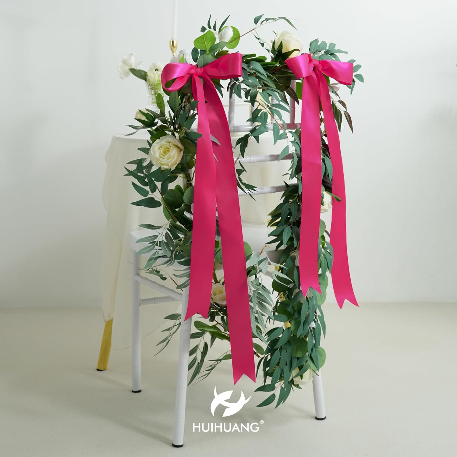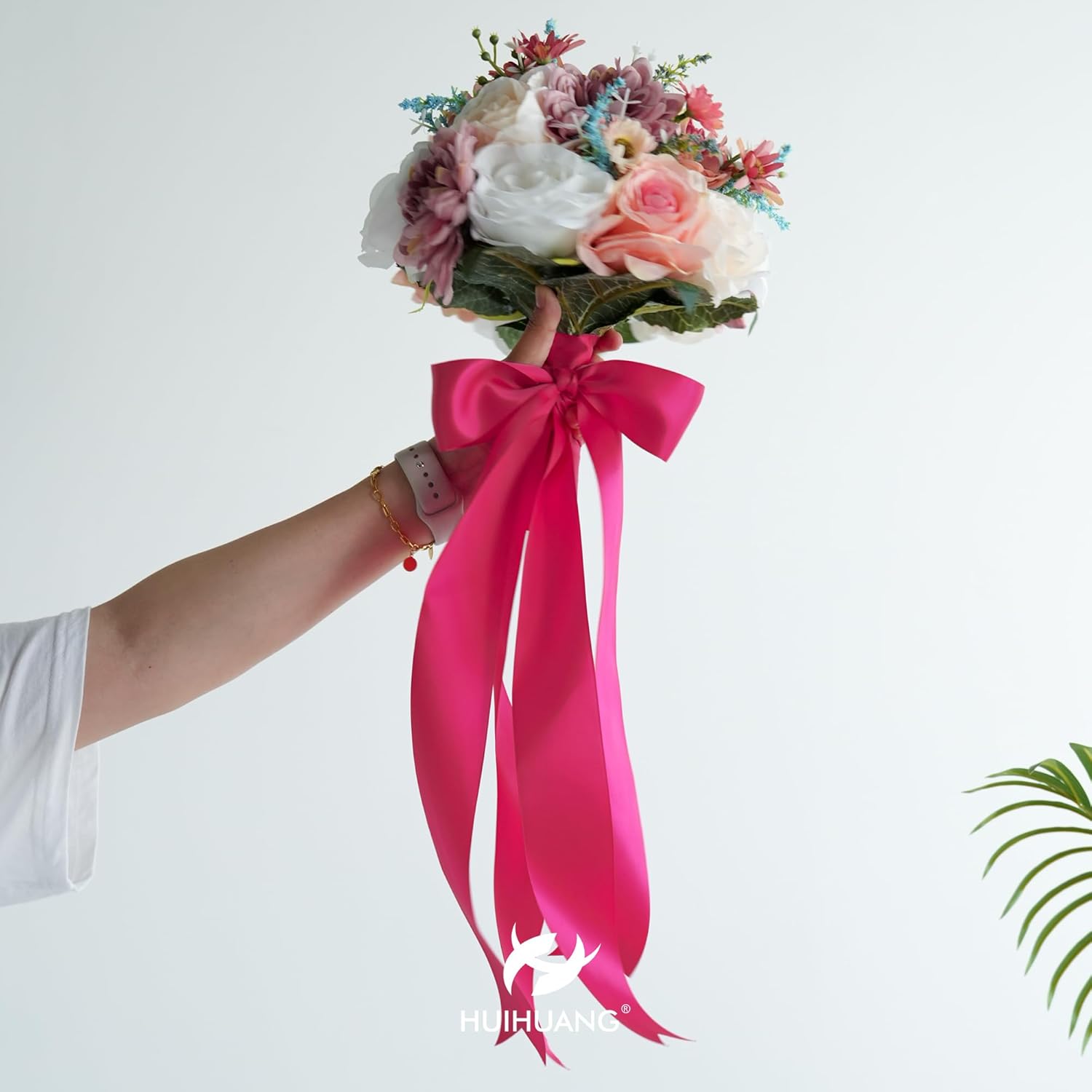HUIHUANG Hot Pink Satin Ribbon - 2 inch Wide, Double Faced, Fuchsia - 25 Yards/Roll for Gift Wrapping, Bows Making, Flower Bouquet, DIY Crafts, Wedding, Bridal Shower, Holiday Party Decor