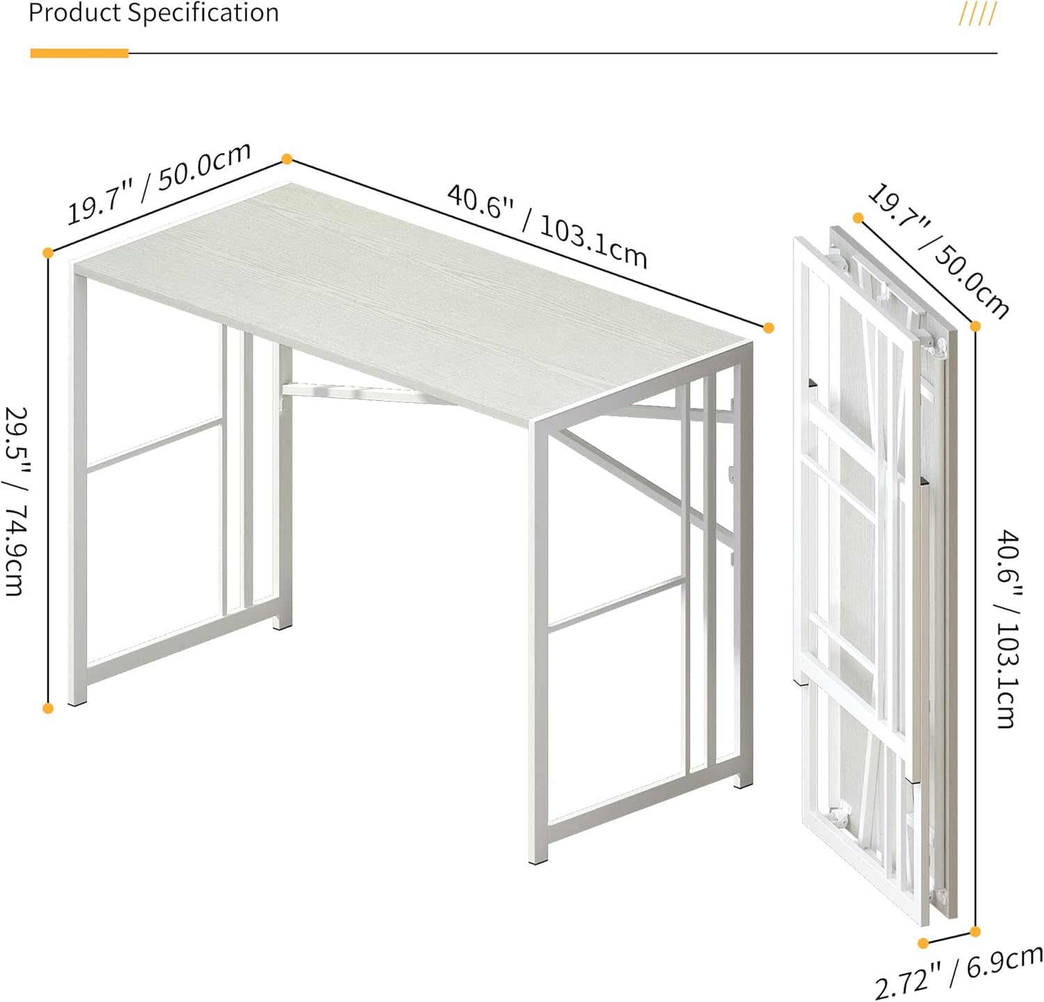Folding Desk 40 inch Writing Gaming Computer Camping Table, No Assembly Required Home Office Desk, White