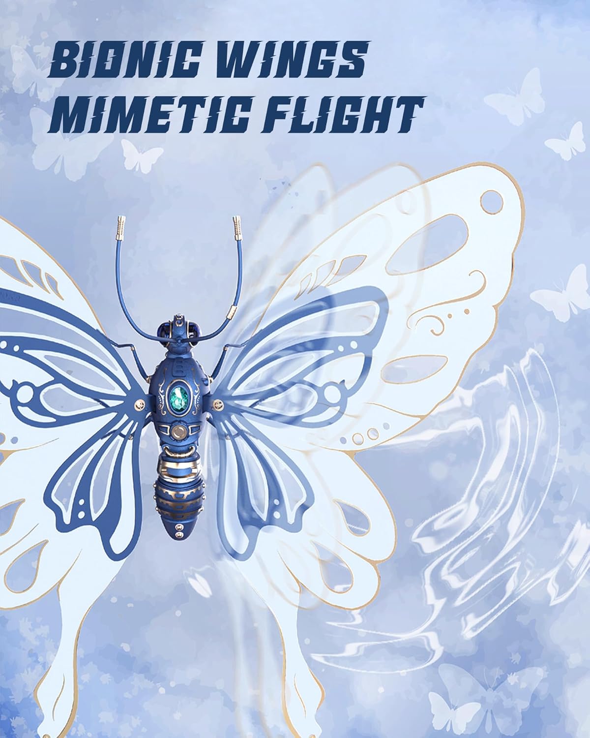- [ROKR Metal Butterfly] The champagne-hued designs, along with a dazzling gem on its back, lend an elegant flair.Press the switch, 3 LED lights will on and the wings will keep flapping.