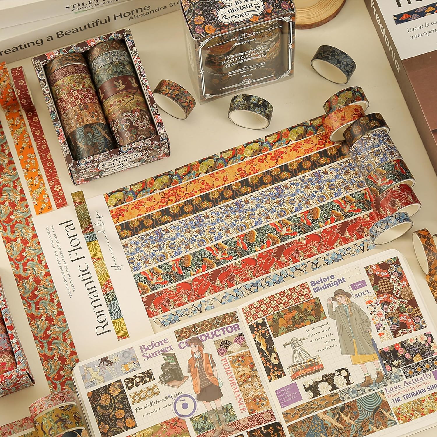 - 👍【ORIENTAL DESIGN】This decorative tape set is composed of 12 different exotic patterns, with a total of 6 combinations to choose from (no repetition). It shows cross-cultural allure of international mystique, and they will make your works full of vitality!
