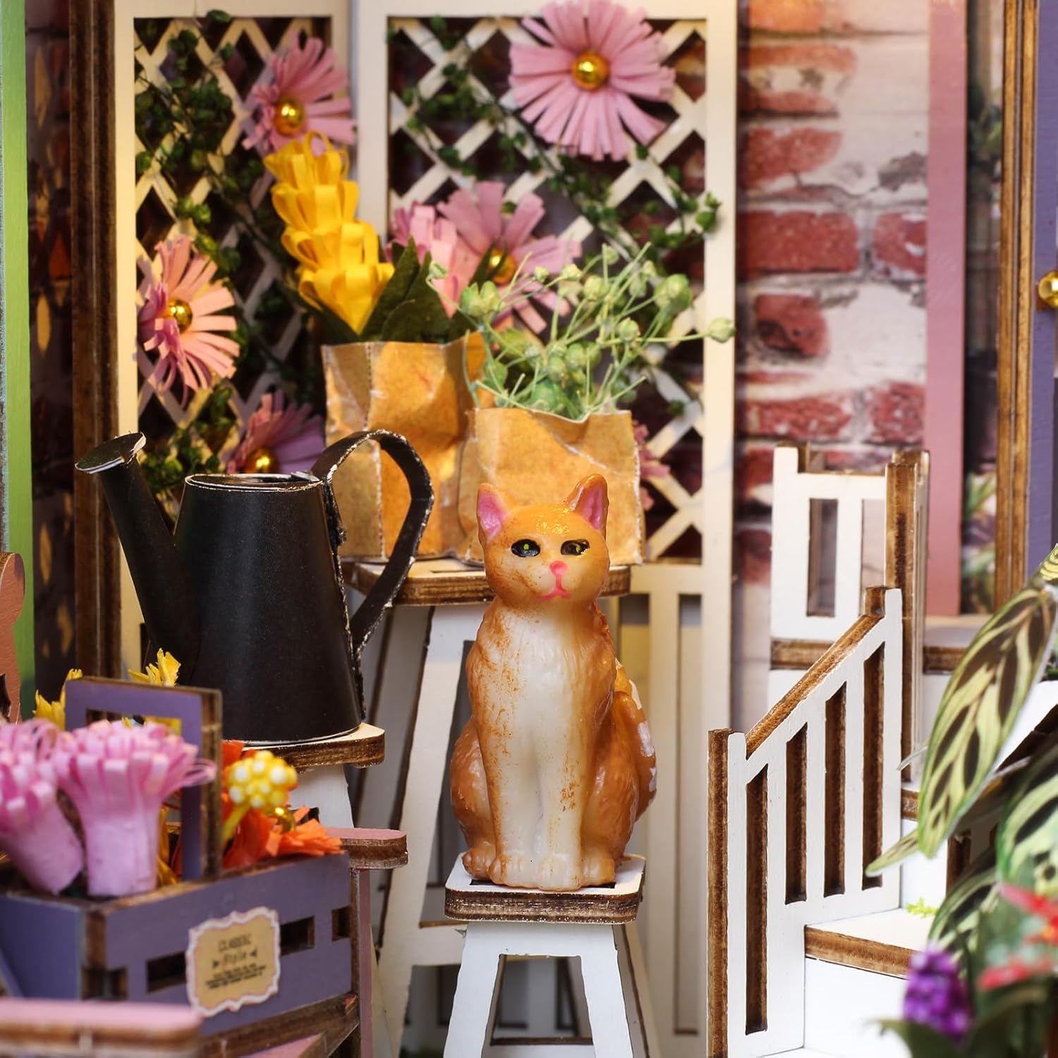 Book Nook Kit - DIY Miniature Dollhouse Kits for Adults, Booknook Bookshelf Insert with LED Light, 3D Wooden Puzzle Bookend Insert, Hobbies Gifts for Family and Friends, Flower House