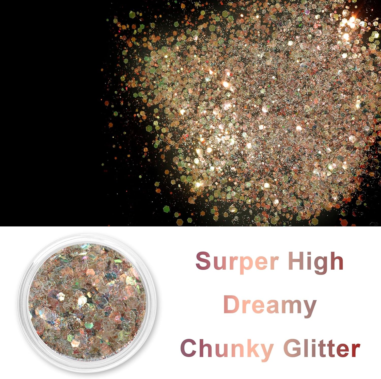 - ✅Dreamy Rainbow Brilliance - The transparent iridescent glitter chunky creates a crystal clear look, playing lustrous rainbow-like colors in different lights. And the confetti glitter bulk adds a special layer of shine and artistry to the work. Dreamy and romantic feelings on craft glitter makes diy never be dull.