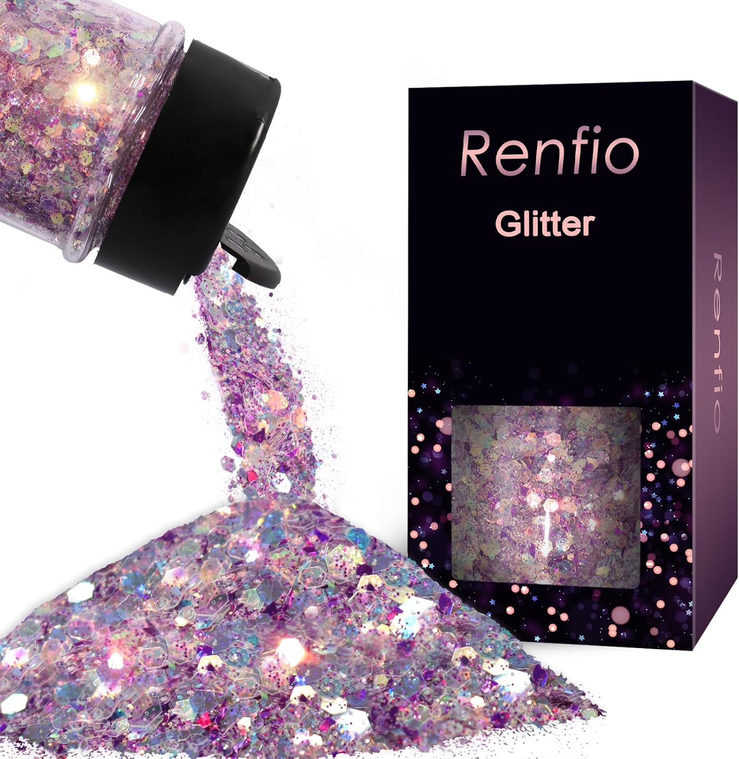 Renfio Opal Chunky Purple Glitter, 1.75oz/50g Dreamy High Sparkle Holographic Fine Iridescent Glitters Flake for Resin Nails Art Hair DIY Snow - Purple Sunglow