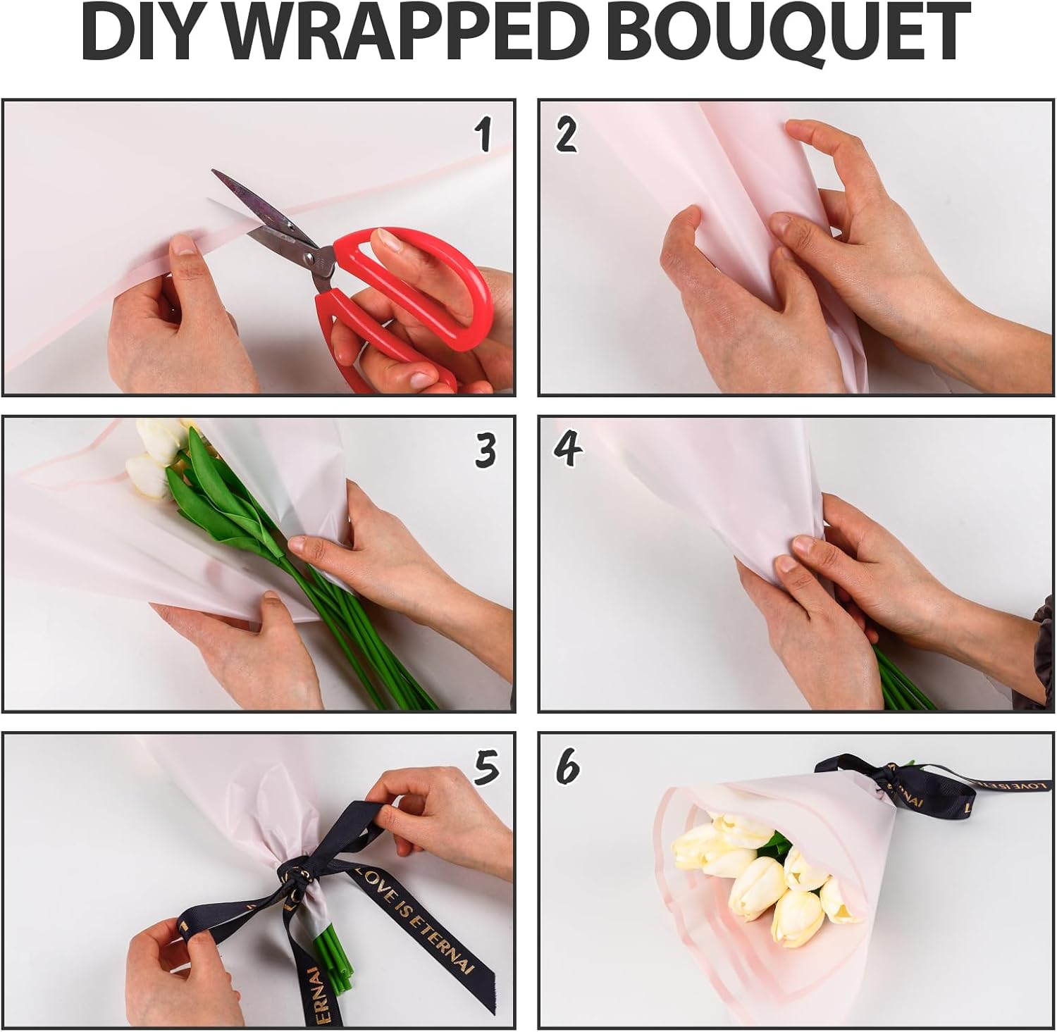 - 【Elegant Design】Florist paper is designed with using classic semi transparent material, the edges are designed in light pink color with a frosting, features glossy and vibrant colors, smooth and comfortable to touch. Is the perfect choice for bouquet packaging and gift box packaging.
