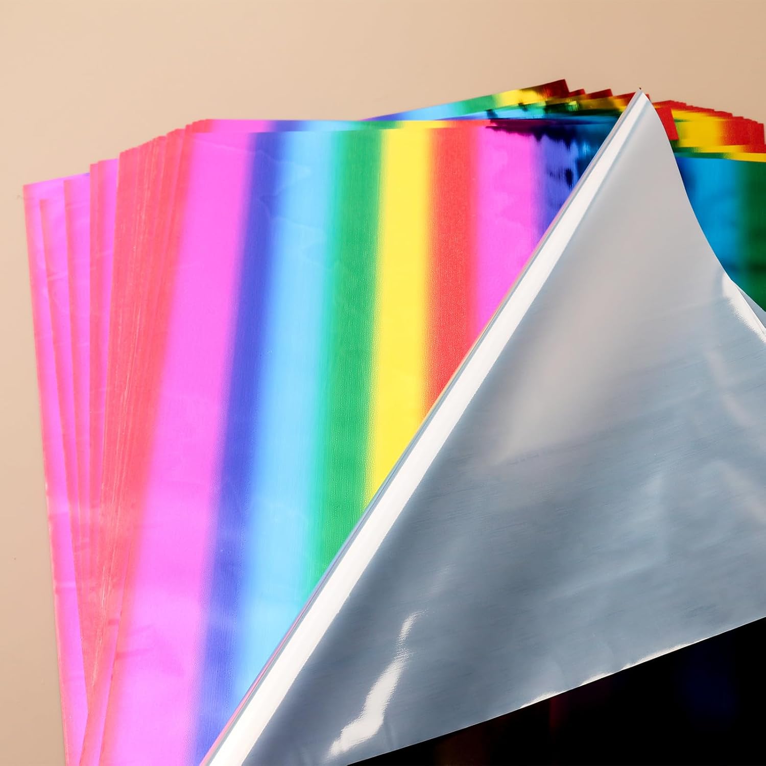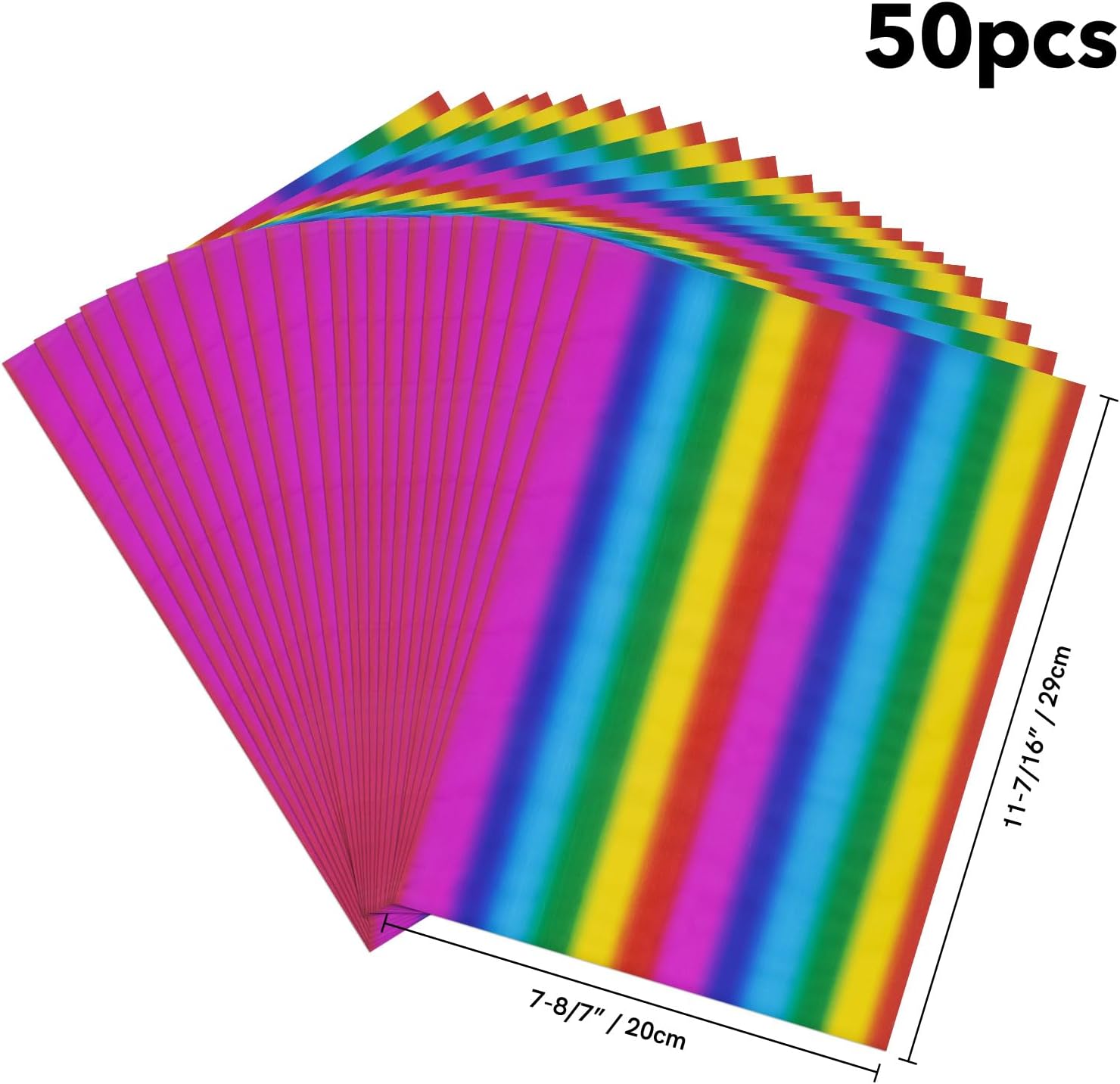 Briartw 20x29cm Hot Foil Paper 50 Sheets Pack Toner Reactive Foil Hot Stamping Foil Paper by Laser Printer and Laminator for Scrapbooking Craft Cardmaking DIY Album (Straight Colorful, 50 Sheets)