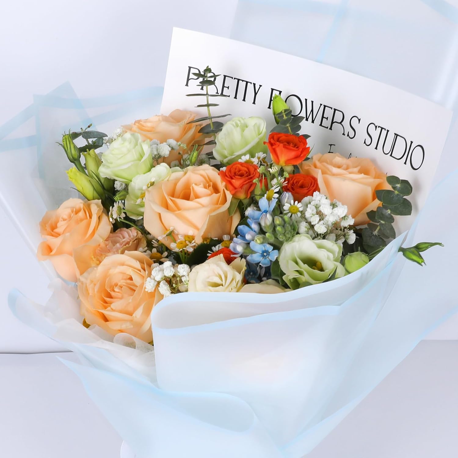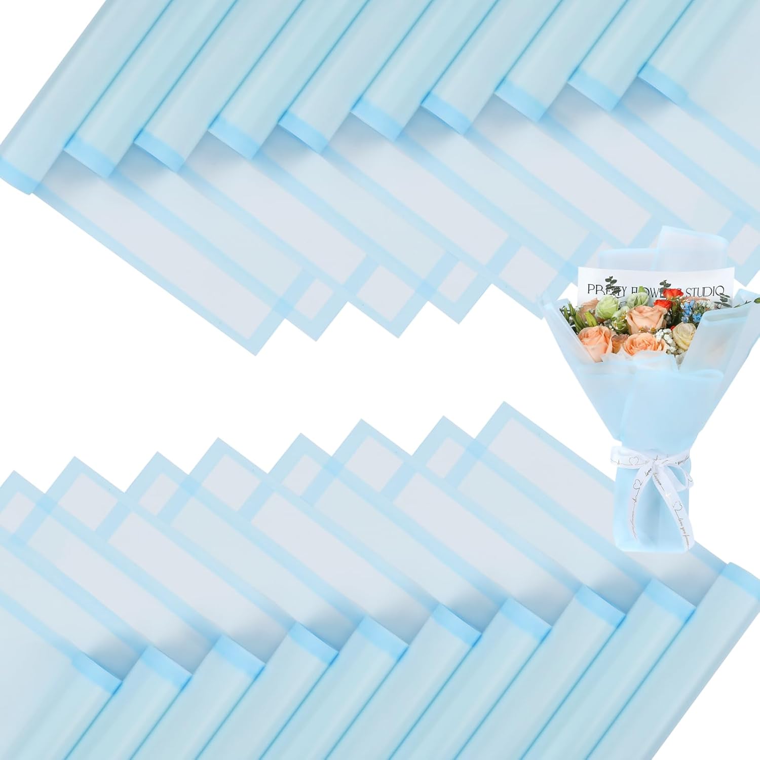 - 【Elegant Design】Florist paper is designed with using classic semi transparent material, the edges are designed in light blue color with a frosting, features glossy and vibrant colors, smooth and comfortable to touch. Is the perfect choice for bouquet packaging and gift box packaging.