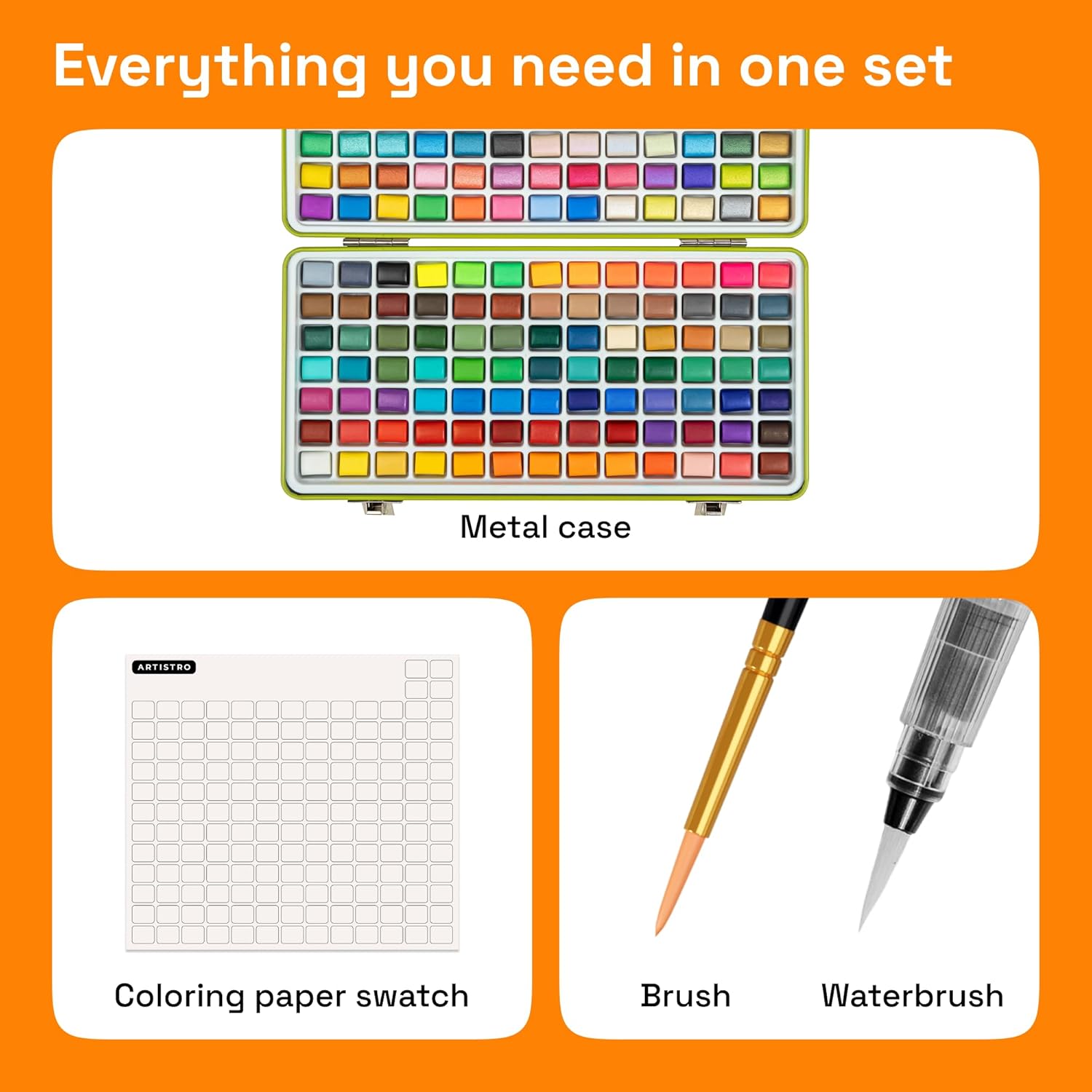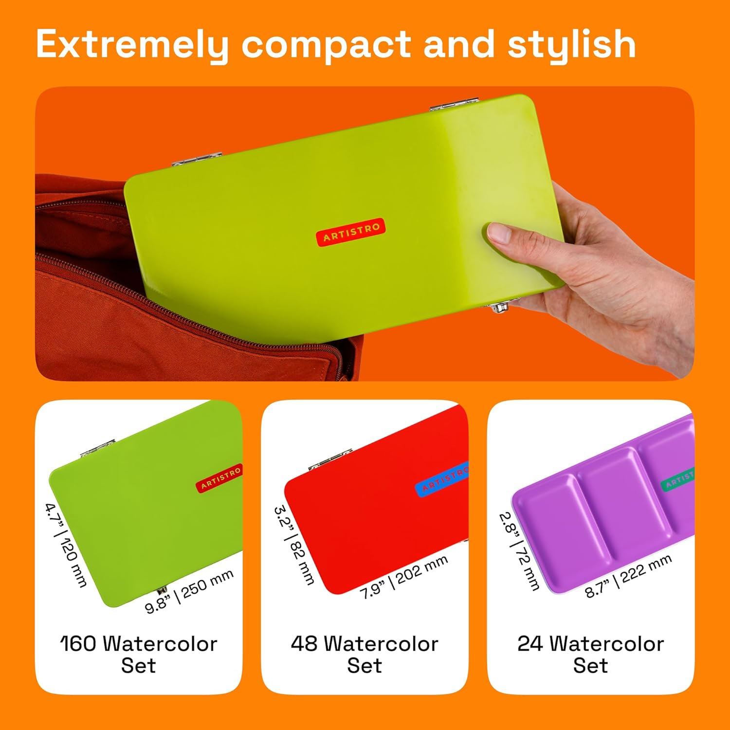 ARTISTRO Watercolor Paint Set 160 Colors - Vivid, Metallic & Neon, Portable Travel Set for Kids & Adults