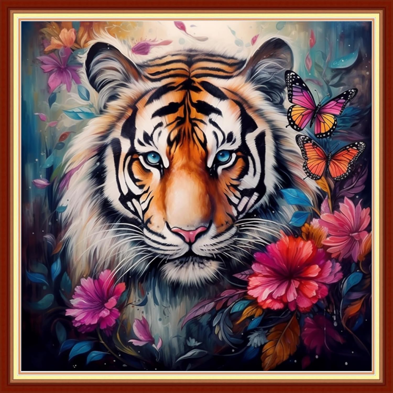 Dooxvey Cross Stitch Kits for Adult Beginners - Full Range of Stamped Kits, Needlepoint & Embroidery Kits - 11CT Cross Stitch Patterns - Tiger Flower, 18x18 inch
