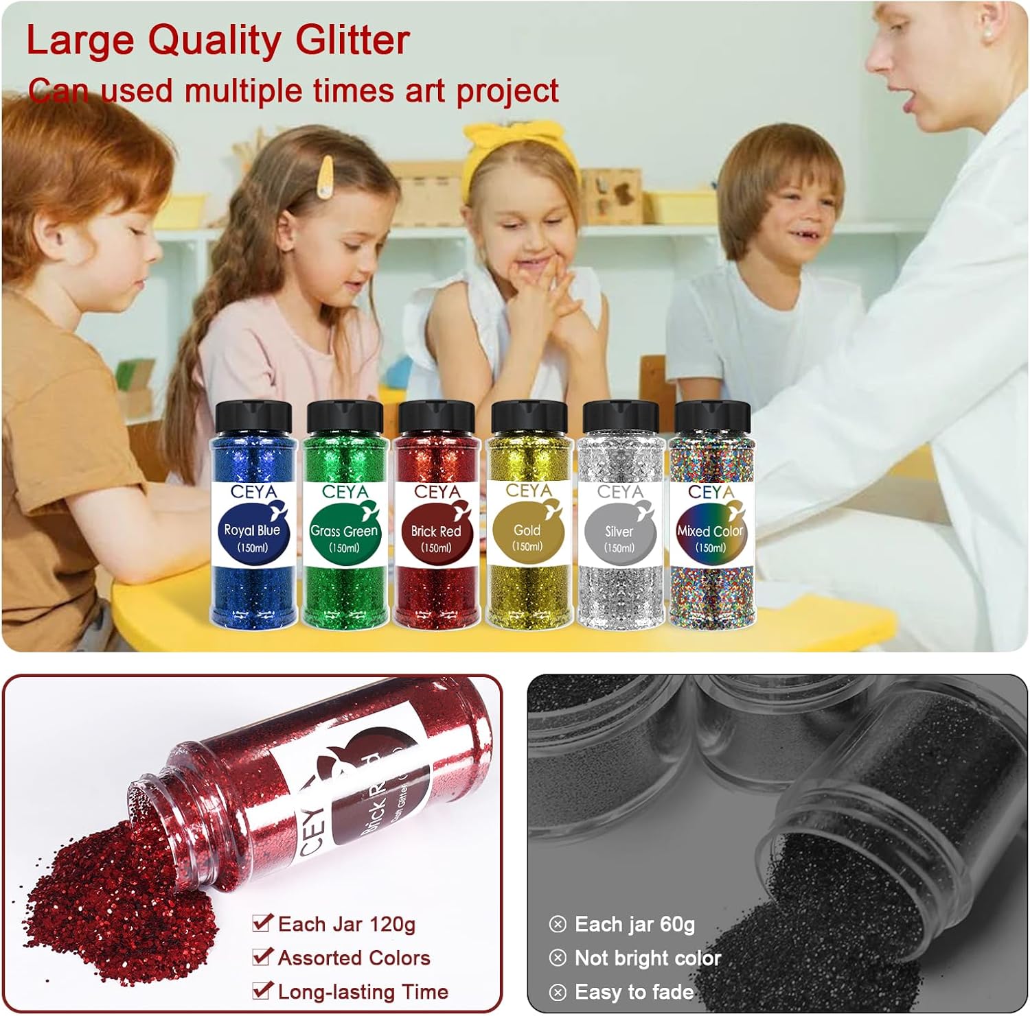 - ✨✨Safe & Convenient: Ceya glitter for crafts are made of high-quality materials, non-toxic, odorless, and not easy to fade. Our craft glitter for school with the unique bottle cap design, the double opening and different powder pouring methods allow you to easily control the flow and usage of the sparkly chunky glitter, convenient for you to use in classroom, parade, parties, carnivals, nightclub, performances, stages, concerts, etc.