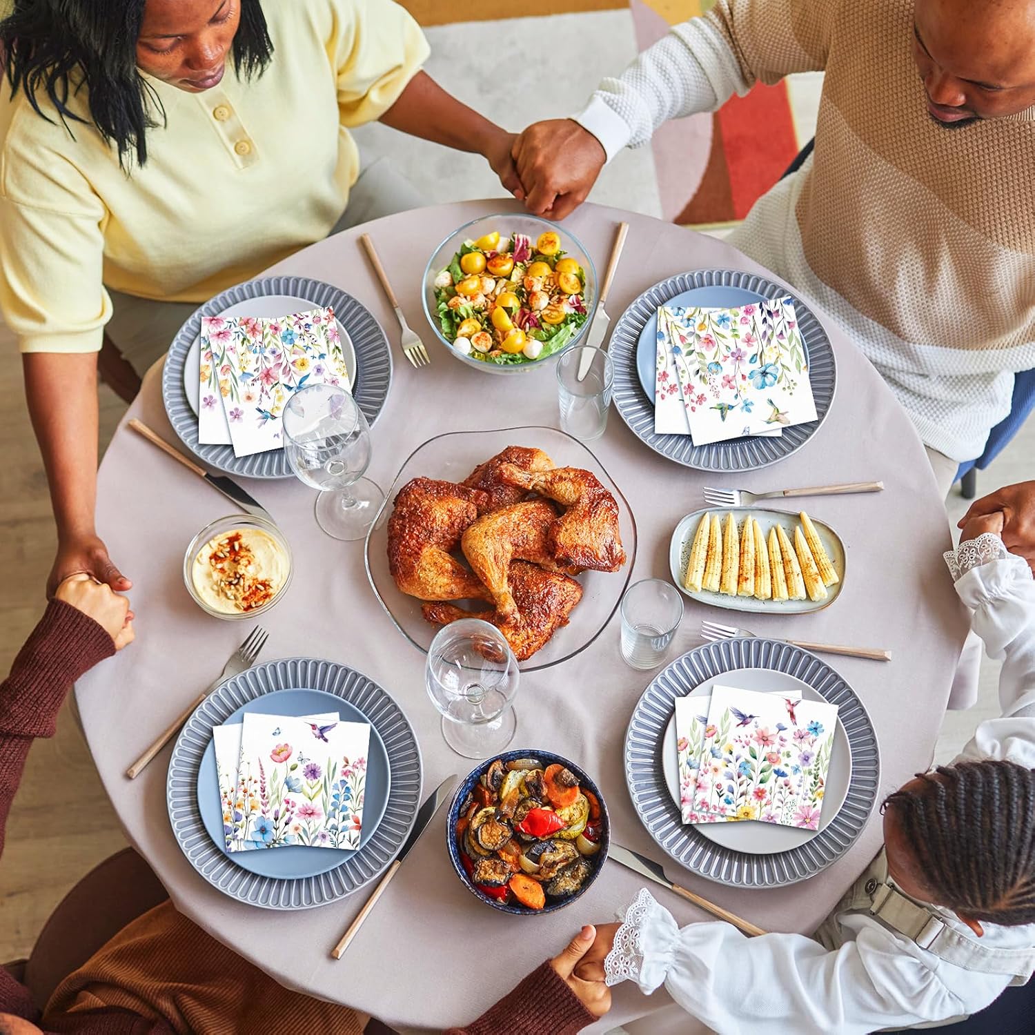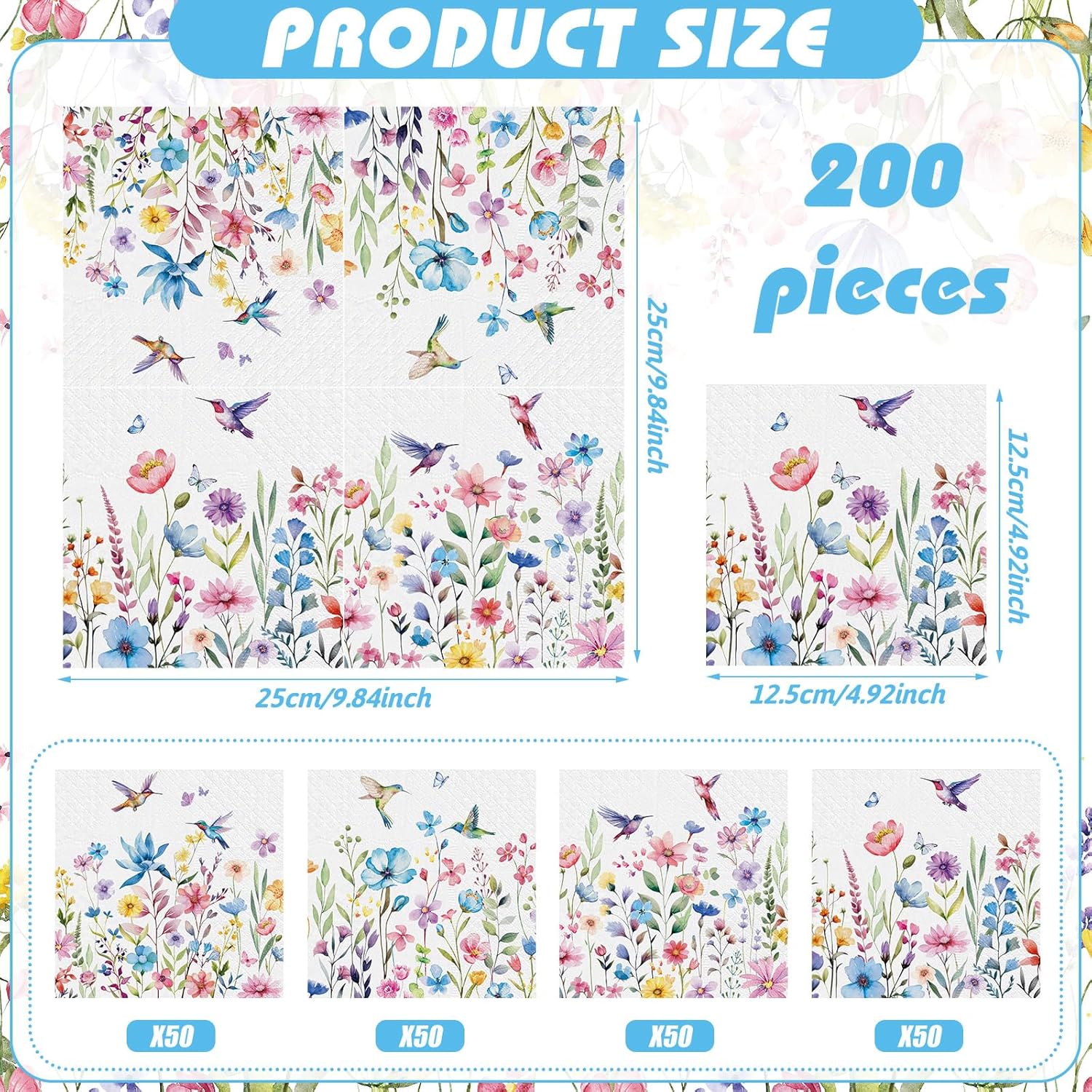 Fulmoon 200 Pieces Summer Floral Cocktail Napkins Disposable Flower Dessert Paper Napkins Bulk Wildflower Hummingbird Decoupage Beverage Towel for Summer Tea Party Dinner Table Decorative Supplies