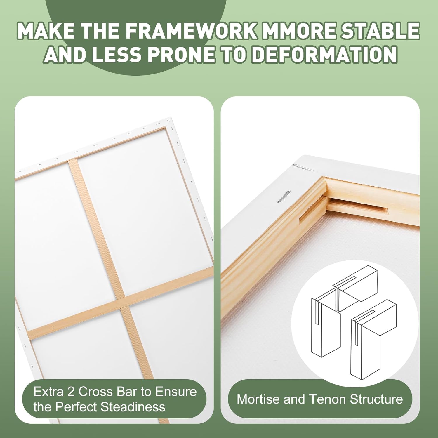 - Wood Frame:The 24x36 canvas for painting is nailed firmly to the pinewood frame, extra cross bar to ensure the perfect steadiness, 5/8 inch thick frame structure,It's sturdy and doesn't deform easily. The high quality will enhance your painting experience.